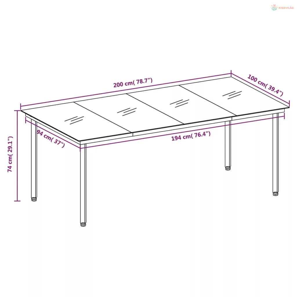 • Mérete: 200 x 100 x 74 cm (Ho x Szé x Ma)