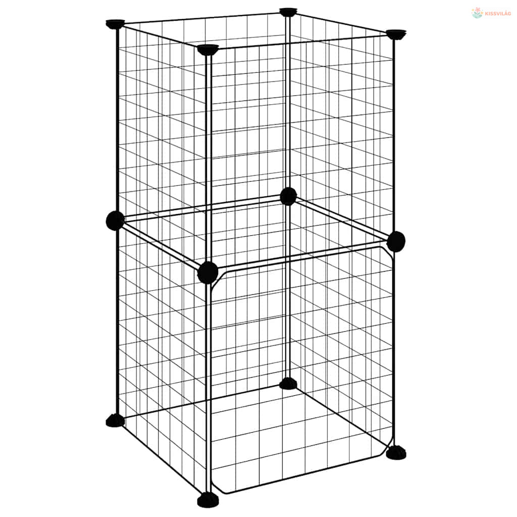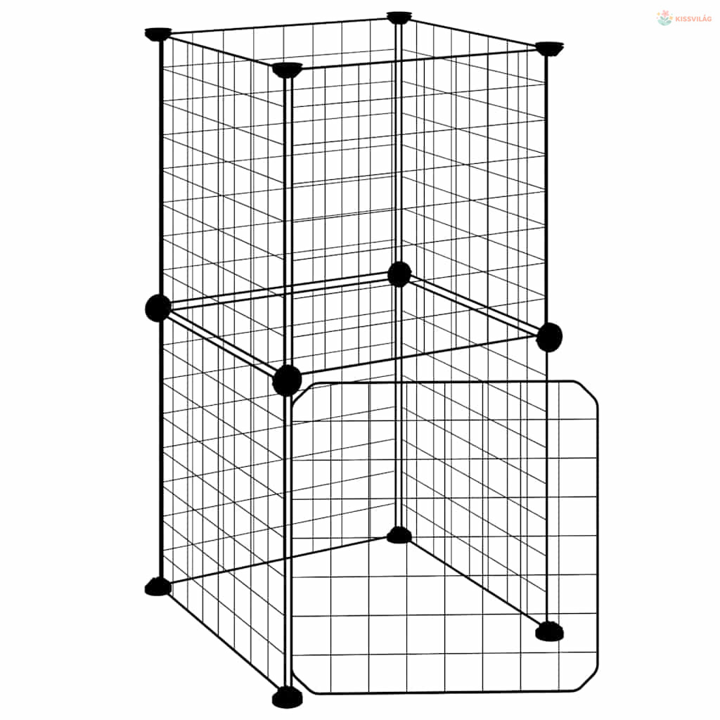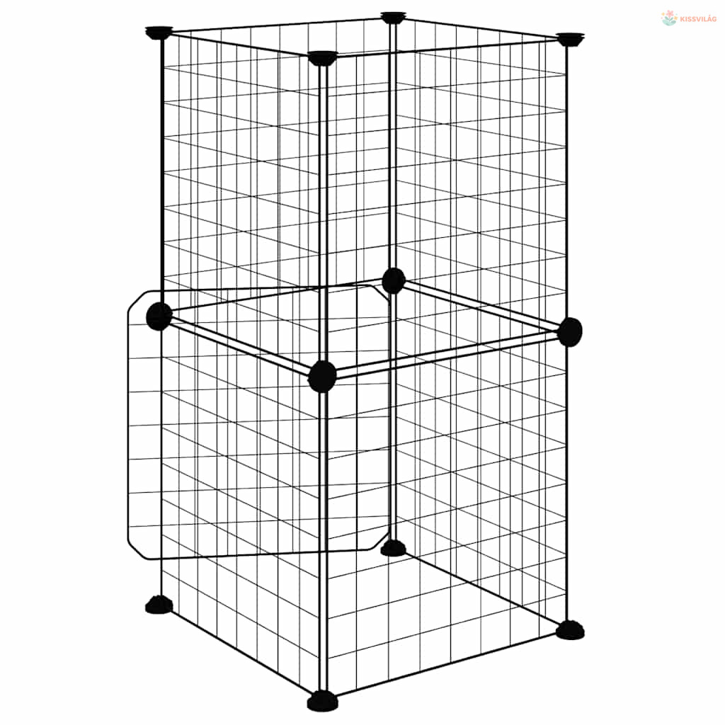 8 paneles fekete acél kisállatketrec ajtóval 35 x 35 cm