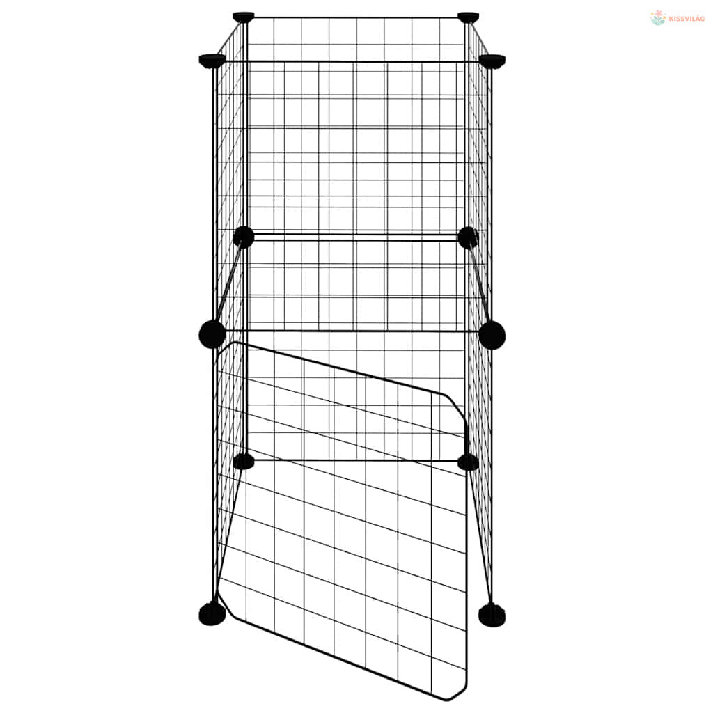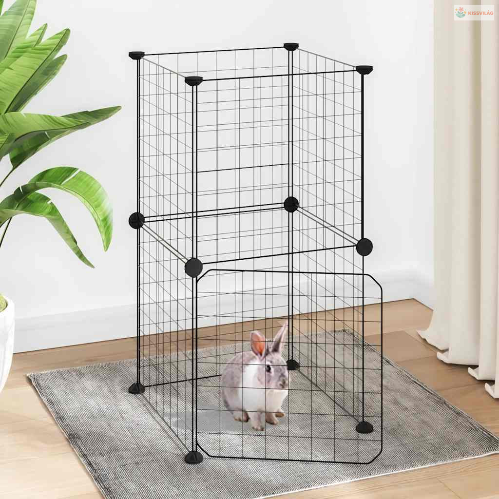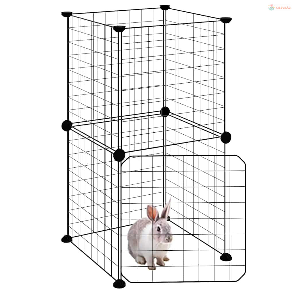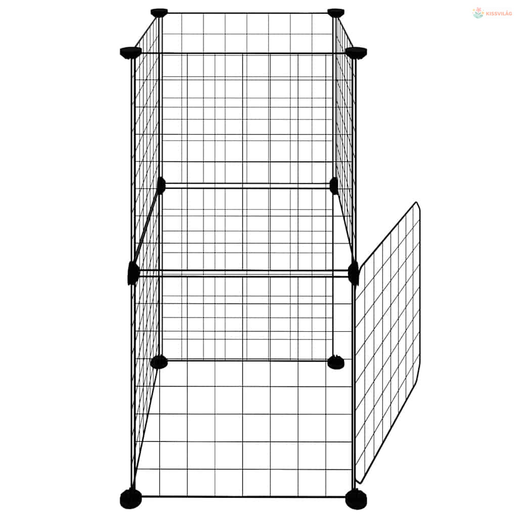 8 paneles fekete acél kisállatketrec ajtóval 35 x 35 cm