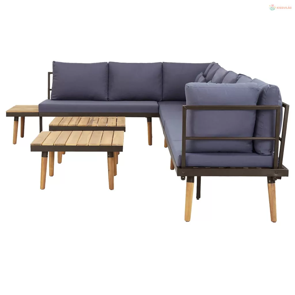 Ez a könnyen tisztítható és strapabíró kerti bútorgarnitúra tömör akácfából készült, ami egy időtálló és az időjárás viszontagságainak ellenálló trópusi keményfa - így biztosított a sok éven át tartó gondtalan használat. A robusztus acélváznak köszönhetően a terasz ülőgarnitúra darabjai stabilak és tartósak. A kis fafelületekre tehet rágcsálnivalót, italokat, teáscsészéket, könyveket vagy más kisebb használati tárgyakat. A szetthez rendkívül kényelmes, vastag párnák járnak. A kevés törődést igénylő poliészter huzatok levehetőek és kimoshatóak. A kerti garnitúra összeszerelést igényel.