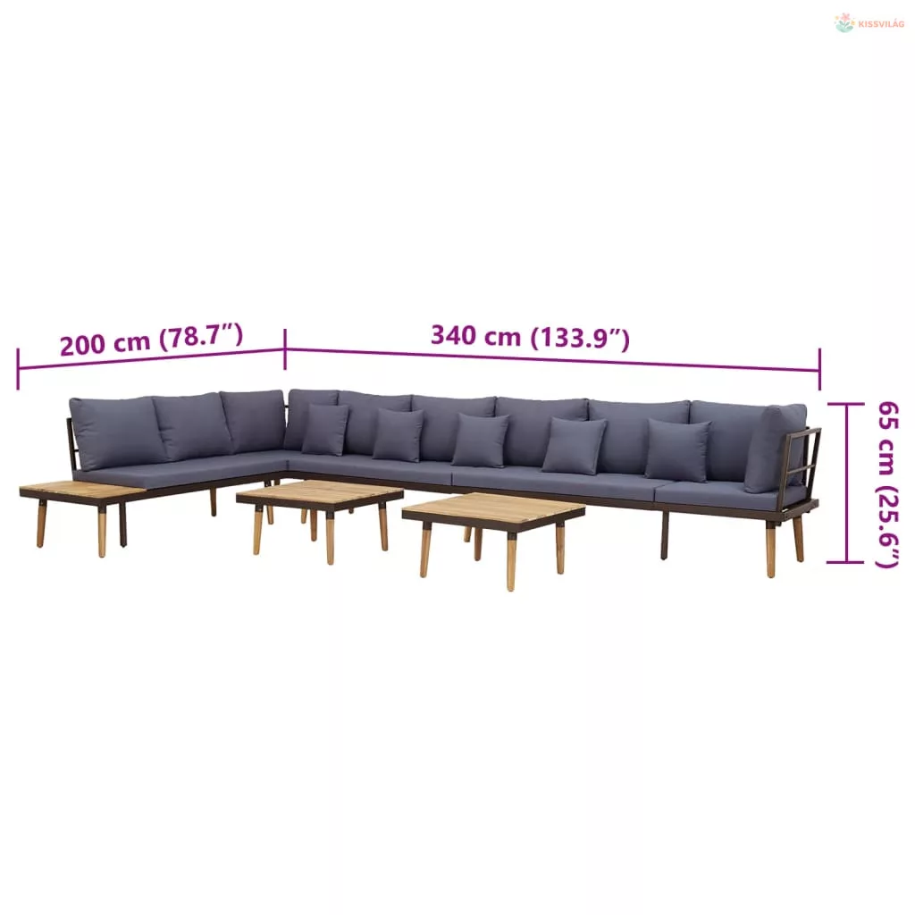 8 személyes tömör akácfa kerti társalgószett párnákkal