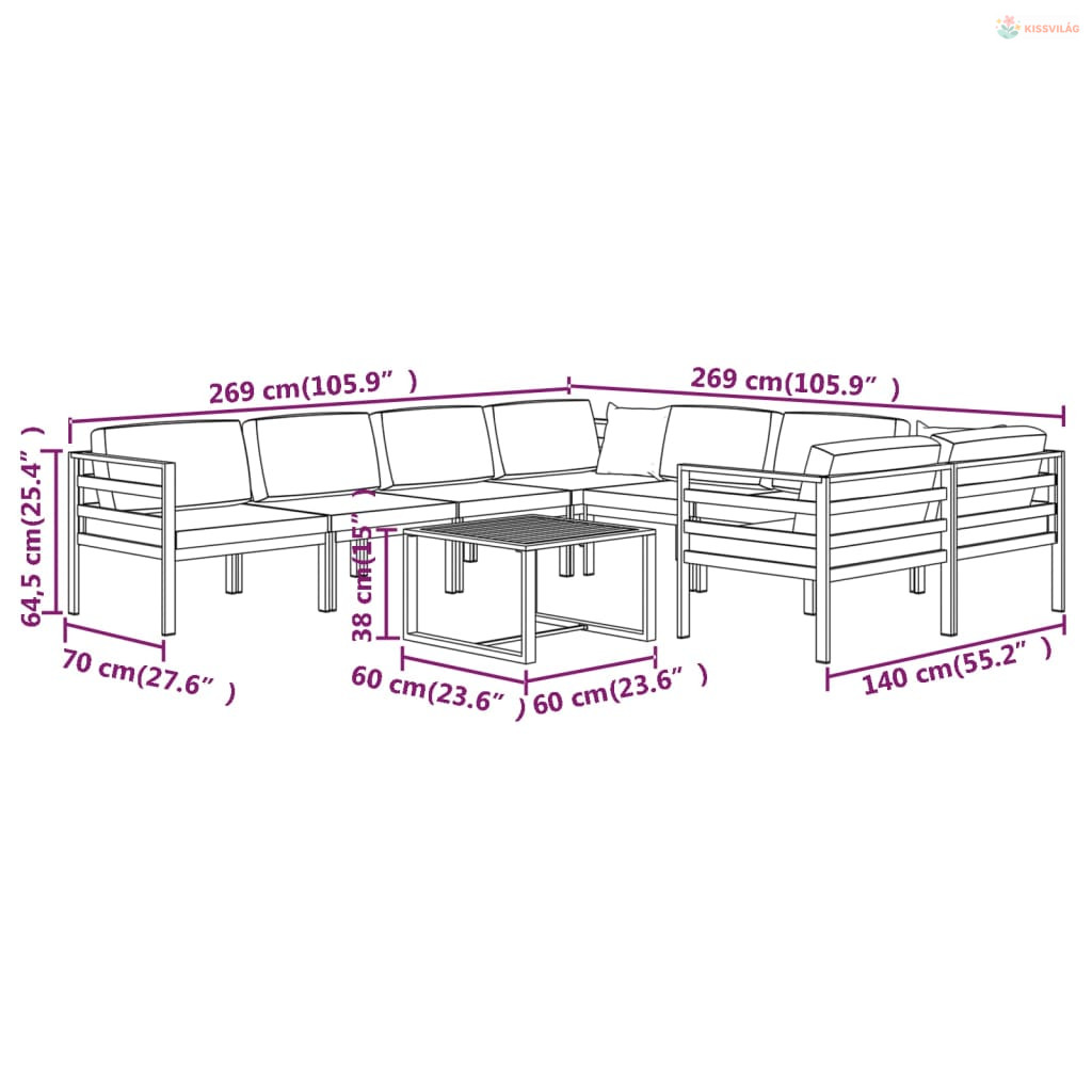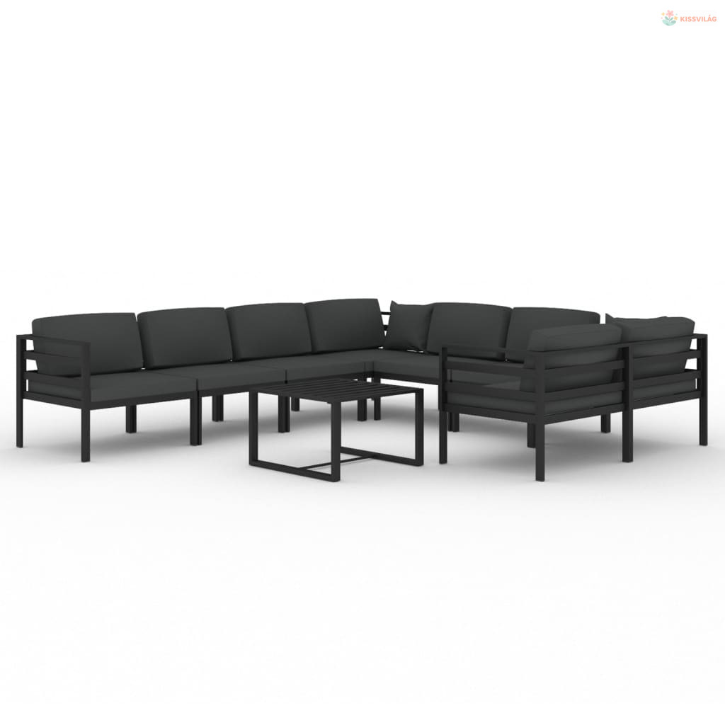 9 részes antracitszürke alumínium kerti ülőgarnitúra párnákkal