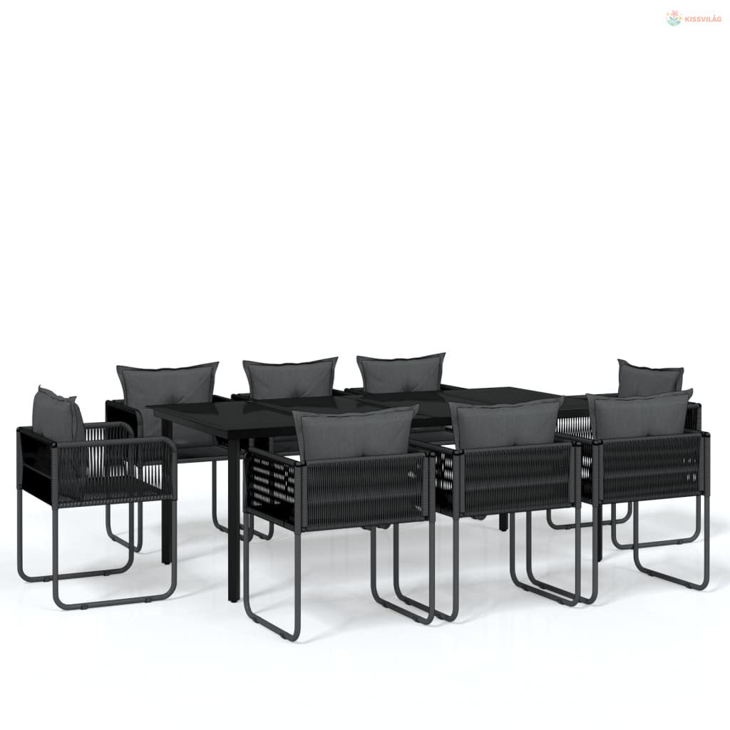 Ez a porszórt acélvázból készült kerti étkezőgarnitúra strapabíró és stabil, mindennapos kültéri használatra alkalmas. A sima üveg asztallap nedves ruhával könnyen tisztítható, és tökéletesen alkalmas italok, ételek és egyéb dekorációs tárgyak elhelyezésére. Az udvari székek PE-rattanból készültek, könnyűek és vízállóak. Emellett a hátpárnák tökéletes kényelmet biztosítanak a pihenés során.