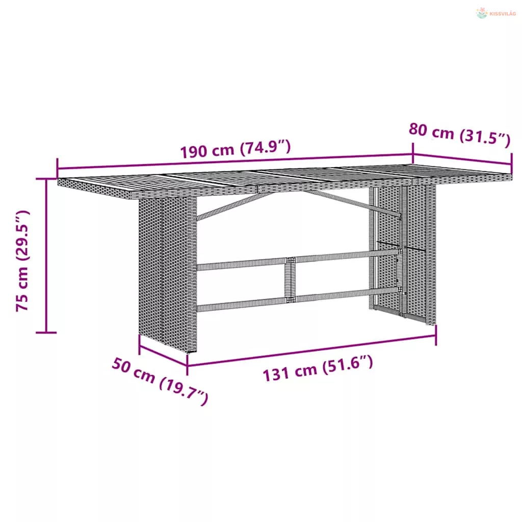 • Stabil és könnyen tisztítható asztallap: Ennek a kerti asztalnak akácfa teteje van, amely masszív, tartós és nedves ruhával könnyen tisztítható.
