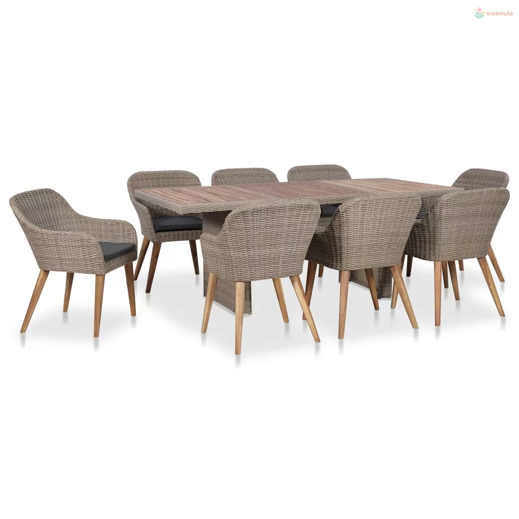 9 részes kültéri polyrattan étkezőgarnitúra párnákkal