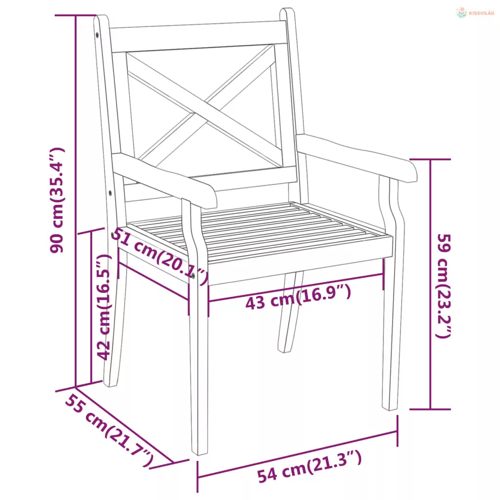 • Szék mérete: 54 x 55 x 90 cm (Szé x Mé x Ma)