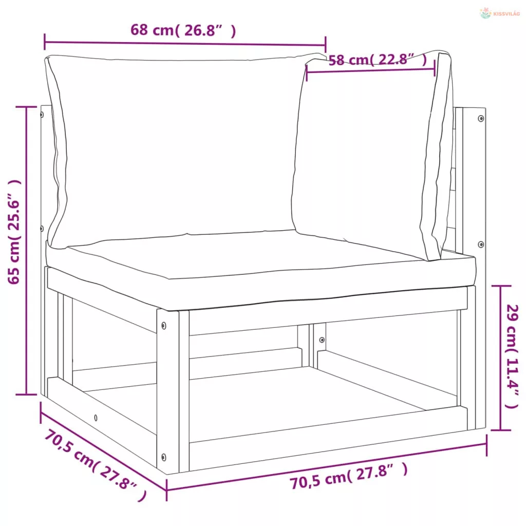 • Ülőfelület magassága a talajtól (párna nélkül): 29 cm