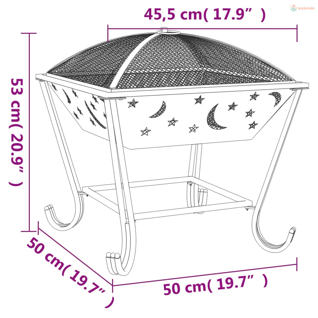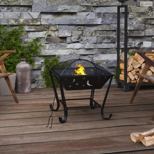 • Biztonsági tartozékok: A háló lehetővé teszi az égő tűz megfigyelését, elzárja a tüzet a biztonság érdekében, és megakadályozza a szikrák és a törmelék kirepülését. Ezenkívül a mellékelt fém piszkavassal a hálós fedelet leveheti, és a rönköket átrendezheti.