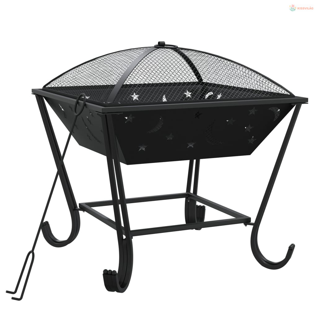 Acél XXL méretű tűztál piszkavassal 50 cm