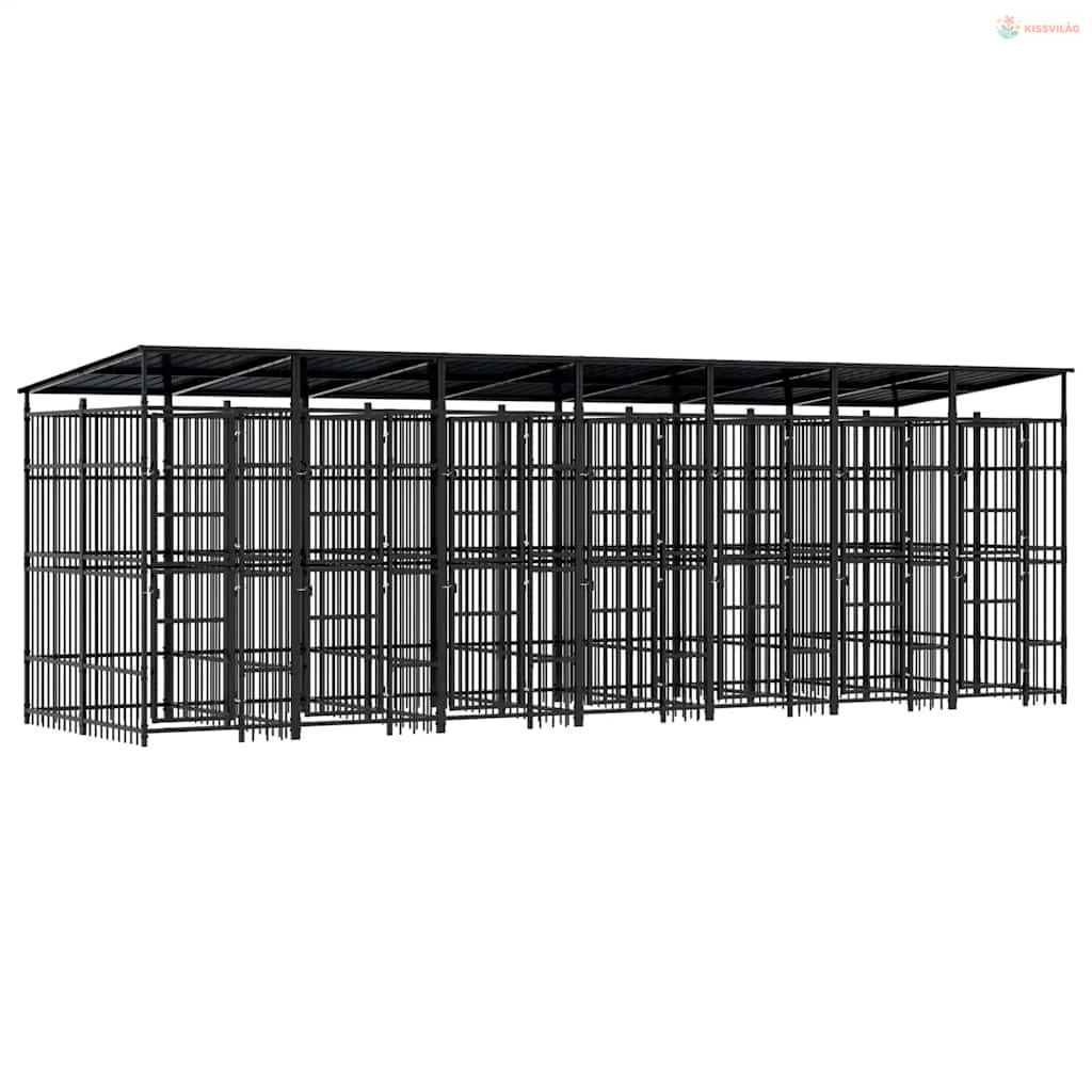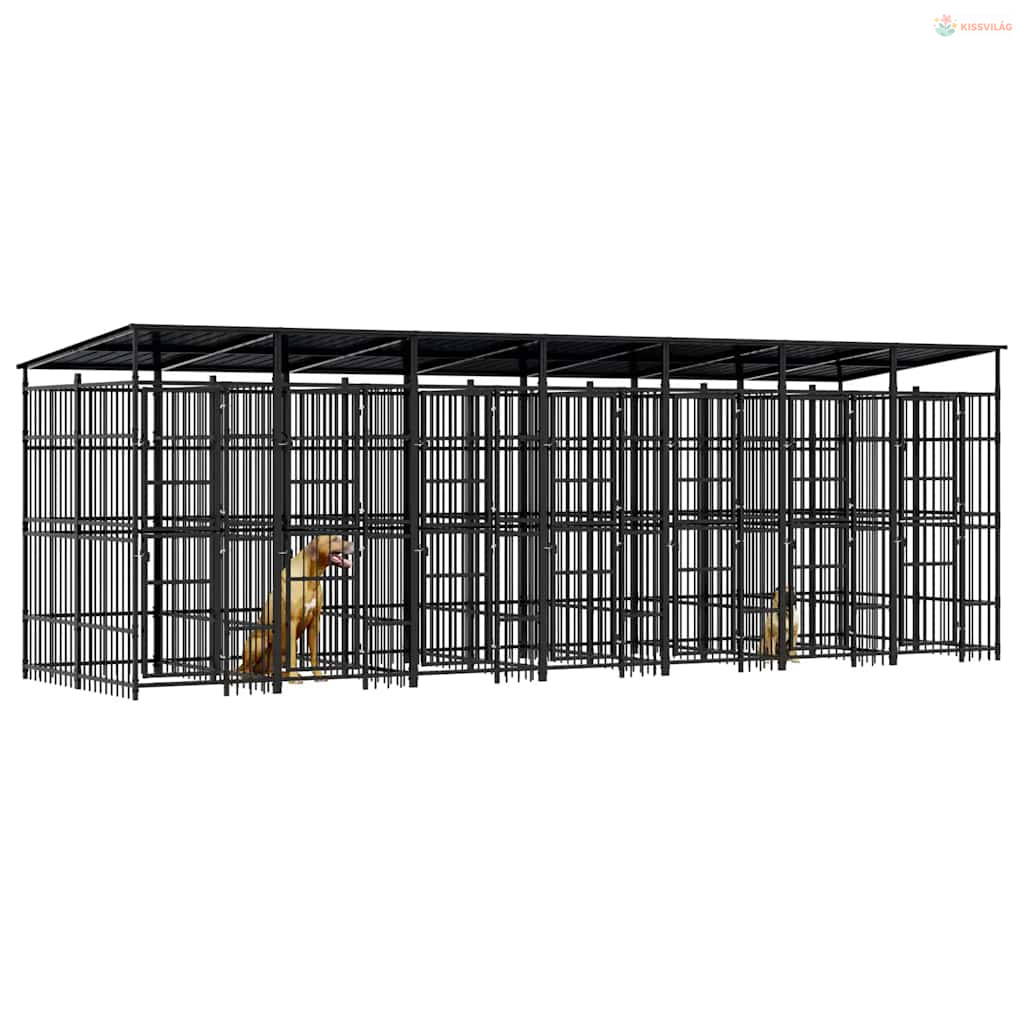 Acél kültéri kutyakennel tetővel 12,9 m²