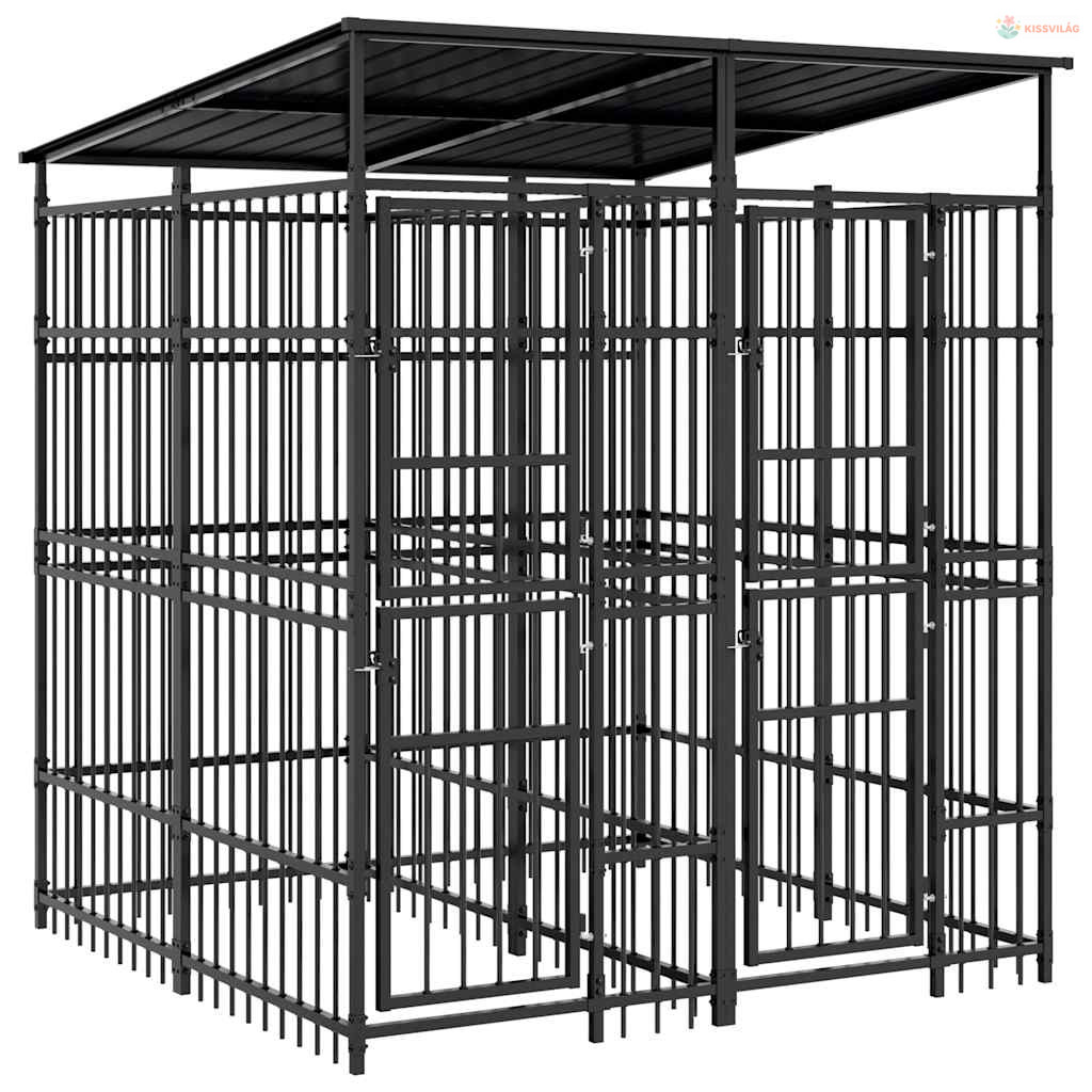 Acél kültéri kutyakennel tetővel 3,69 m²