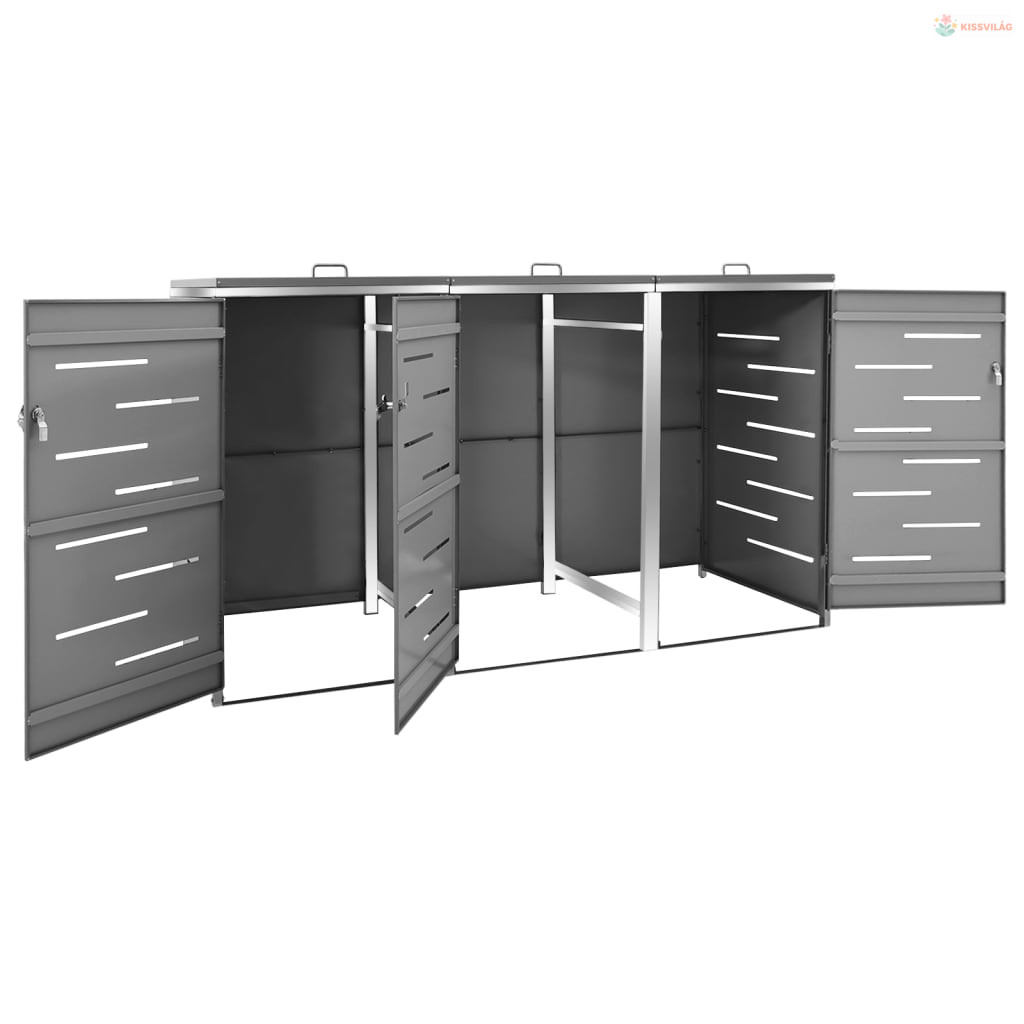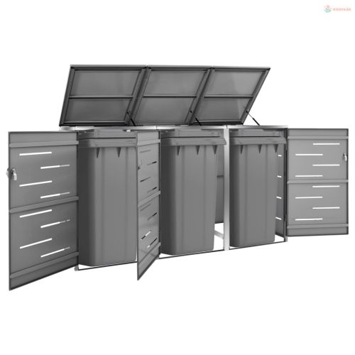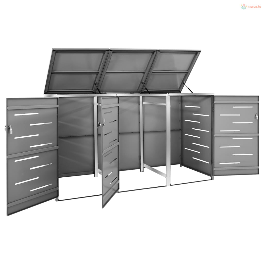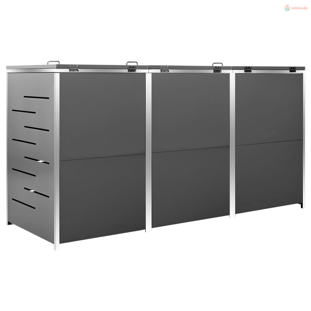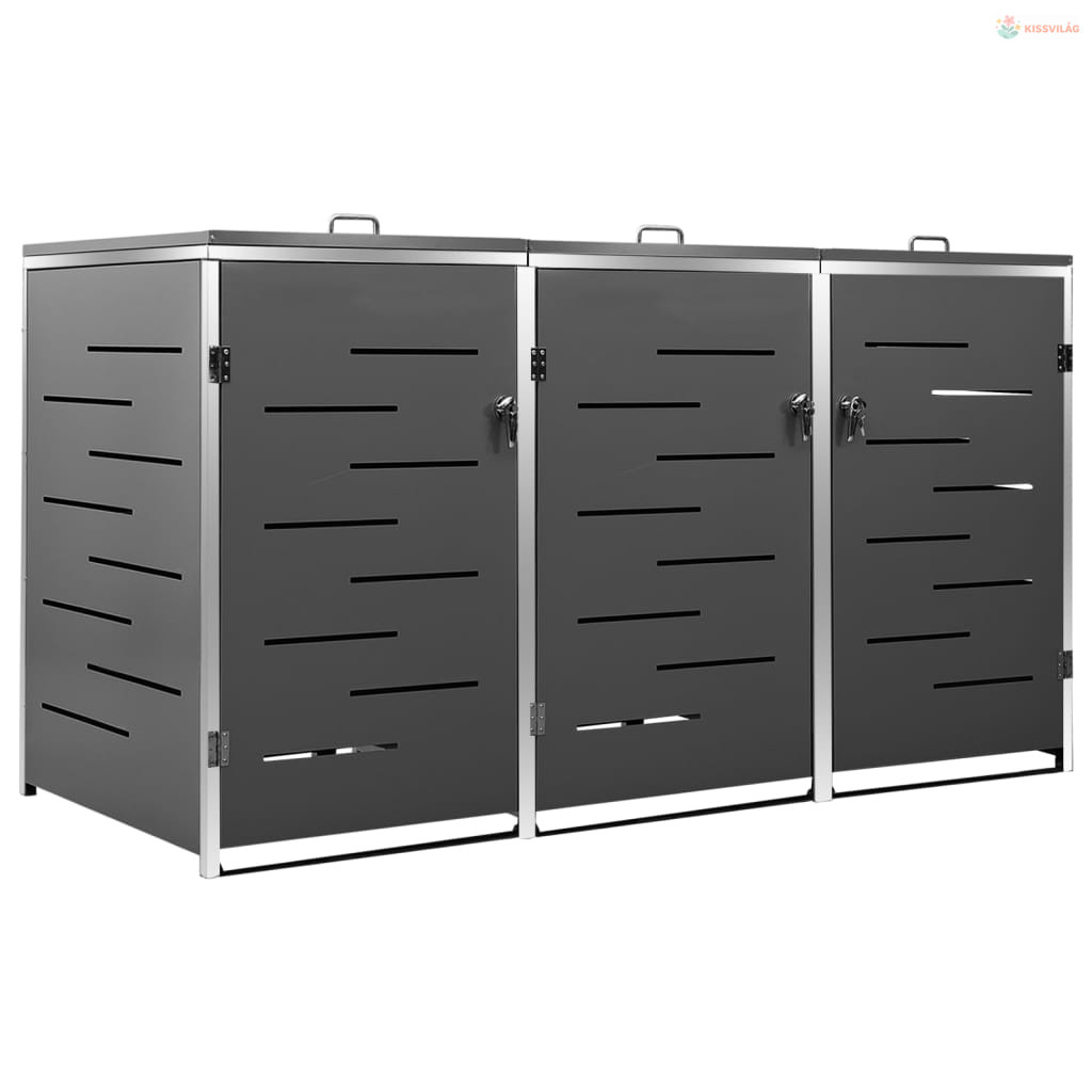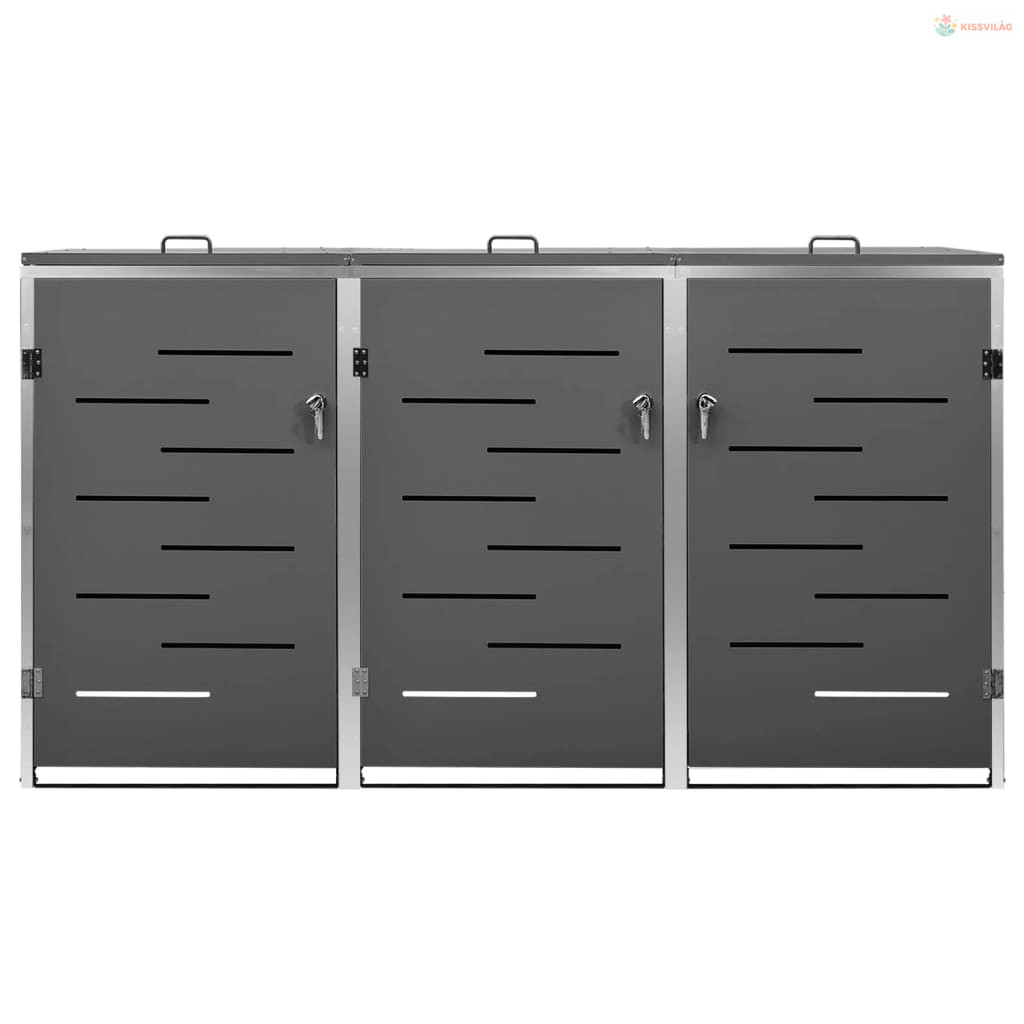 Acél tároló három gurítható szemeteskukához 207x77,5x112,5 cm