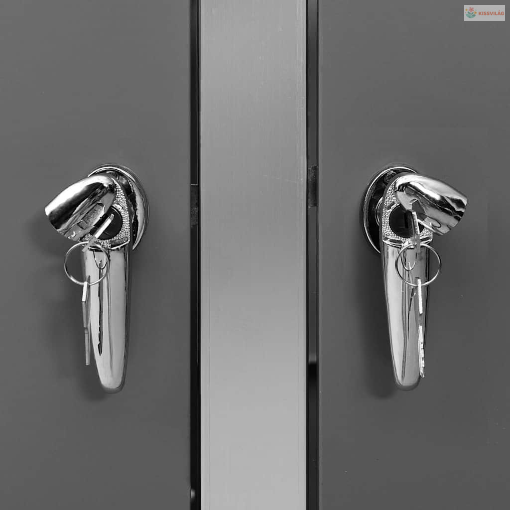 Ez a szemeteskuka tároló horganyzott acélpanelből és acélvázból készült, így rendkívül stabil és rozsdaálló. Az üreges tervezés lehetővé teszi a légáramlást és meggátolja a kellemetlen szagokat, a zárrendszer pedig biztosítja a szemeteskukák biztonságos tárolását. Továbbá a praktikus rugós fedél egyszerűvé teszi a kukát be- és kitolását.
