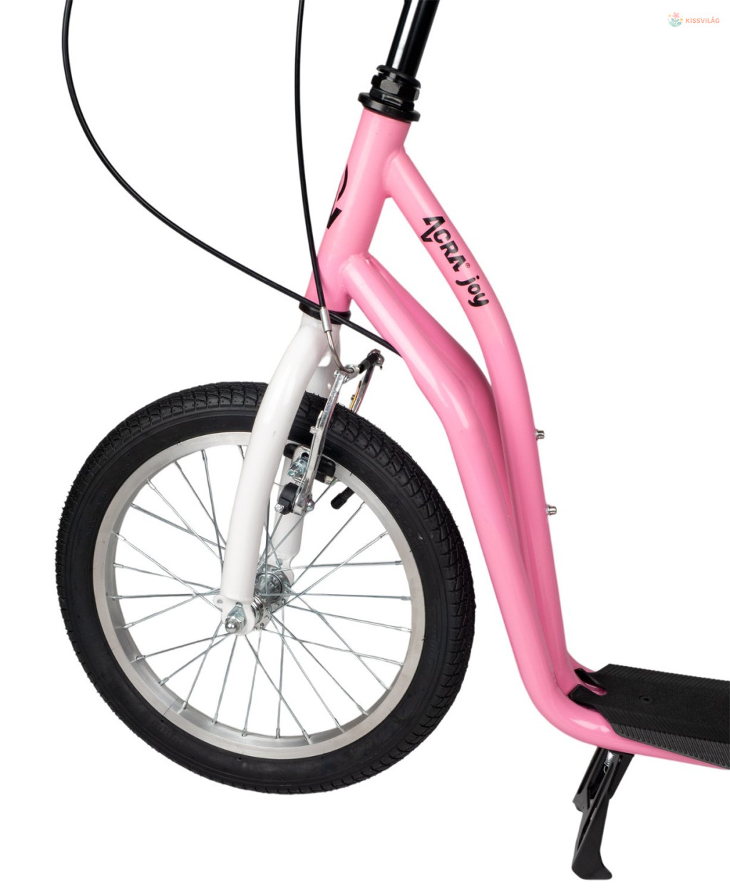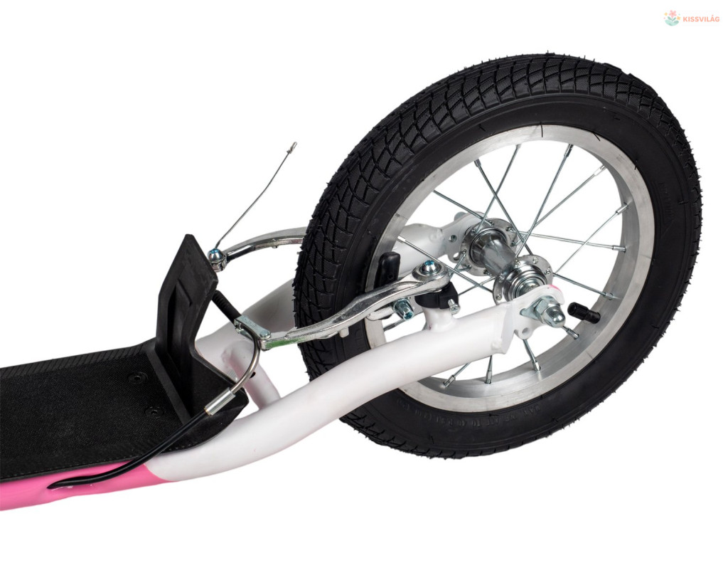 Robogó 100 kg terhelhetőséggel, ajánlott magasság 160 cm-ig, 9 éves kortól, első kerék 16„, hátsó kerék 12”, minőségi könnyű acél, első és hátsó V-fék, gumi markolat.