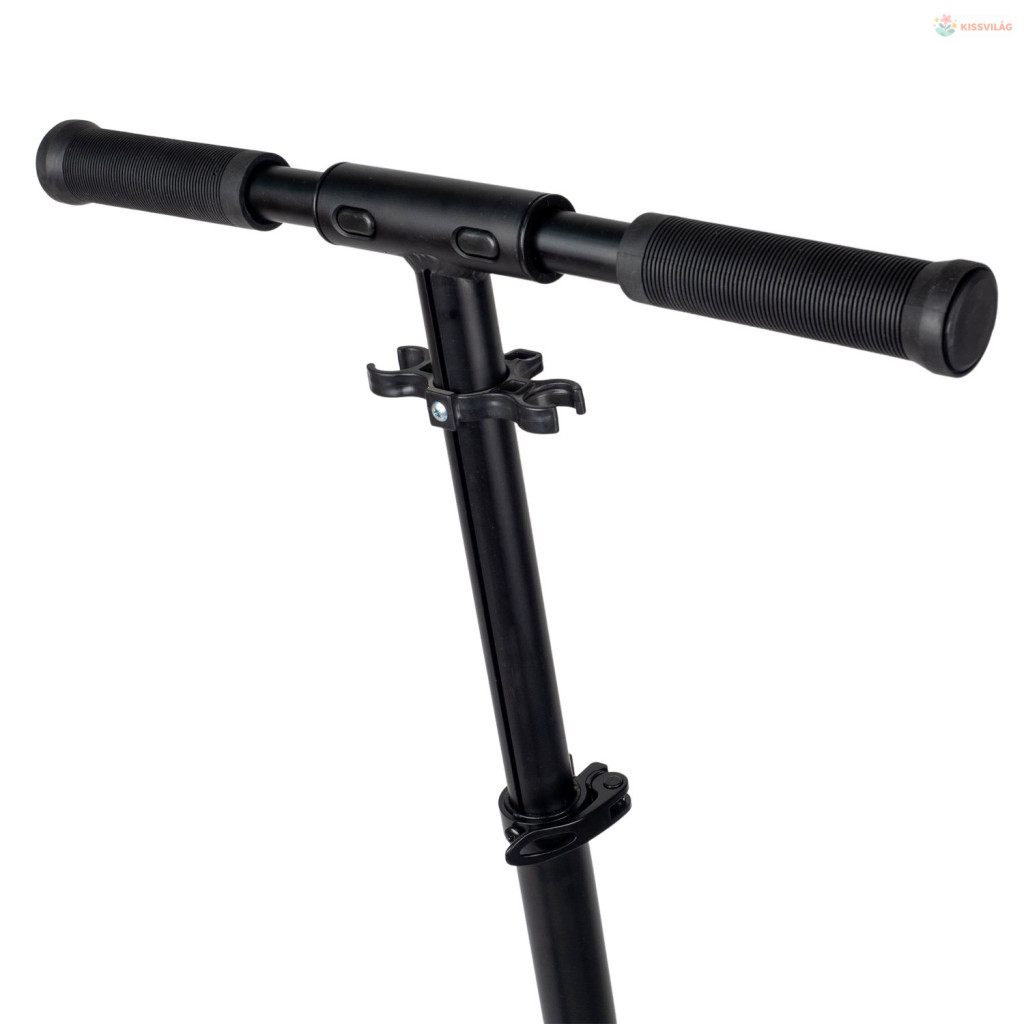 Összecsukható roller 100 kg terhelhetőséggel, ajánlott magasság 180 cm-ig, 9 éves kortól, 200 mm átmérőjű gumikerekek, minőségi könnyű acél, hátsó kézifék, állítható kormány gumikarokkal.