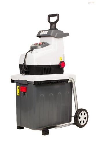 Elektromos ágaprító, 2 800 W-os motor túlterhelés elleni védelemmel. Acél vágófej 44 mm átmérőjű ágak aprításához. 60 literes hulladéktartály. Biztonsági funkció a forgásirány megváltoztatására. Praktikus transzportkerekekkel.