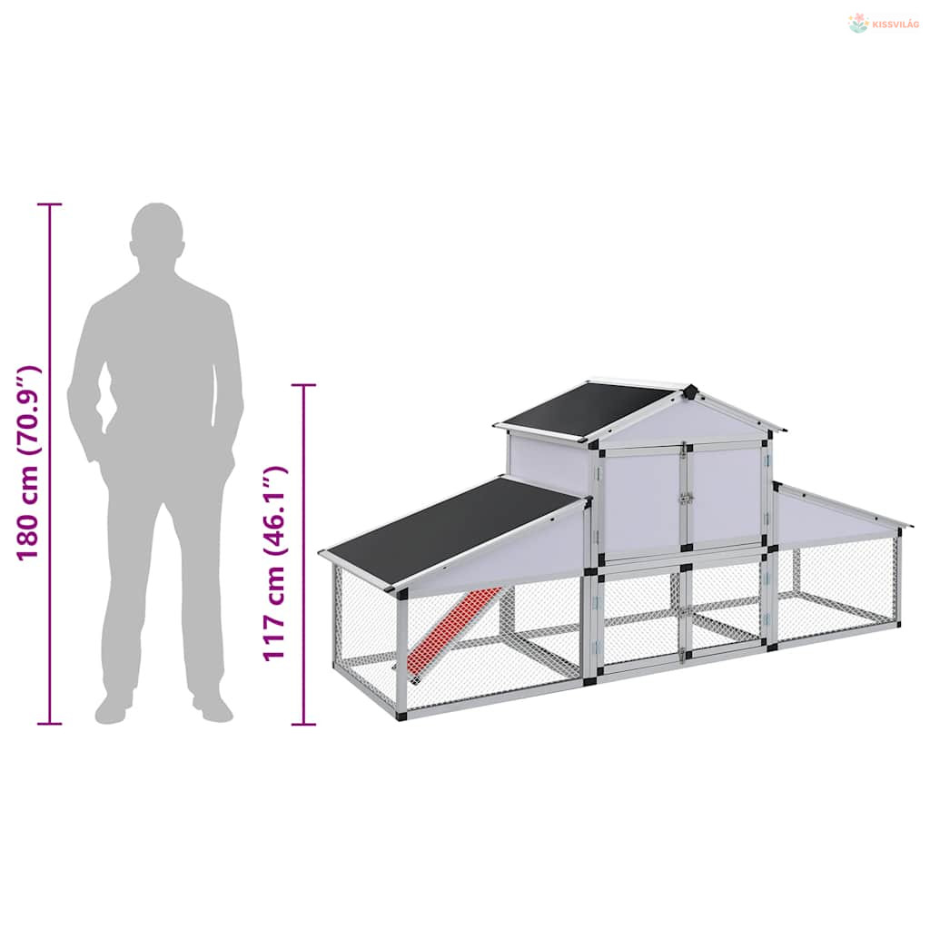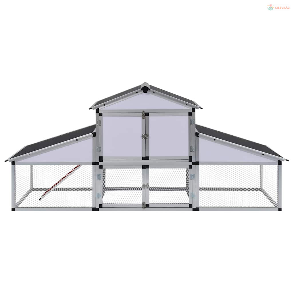 A kiváló minőségű alumíniumszerkezetnek köszönhetően a csirkeól strapabíró és tartós. Az összes tető kinyitható ezek lecsavarozásával a jobb szellőzés és megvilágítás érdekében.