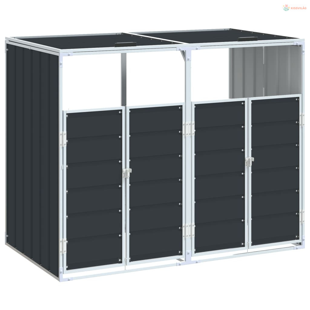 Antracit acél kerekes szemetes tároló dupla tárolókhoz 138 x 79 x 117 cm