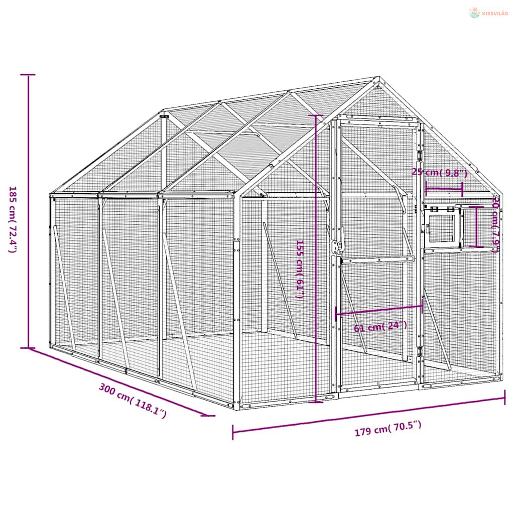 Antracit alumínium madárház 1,79 x 3 x 1,85 m