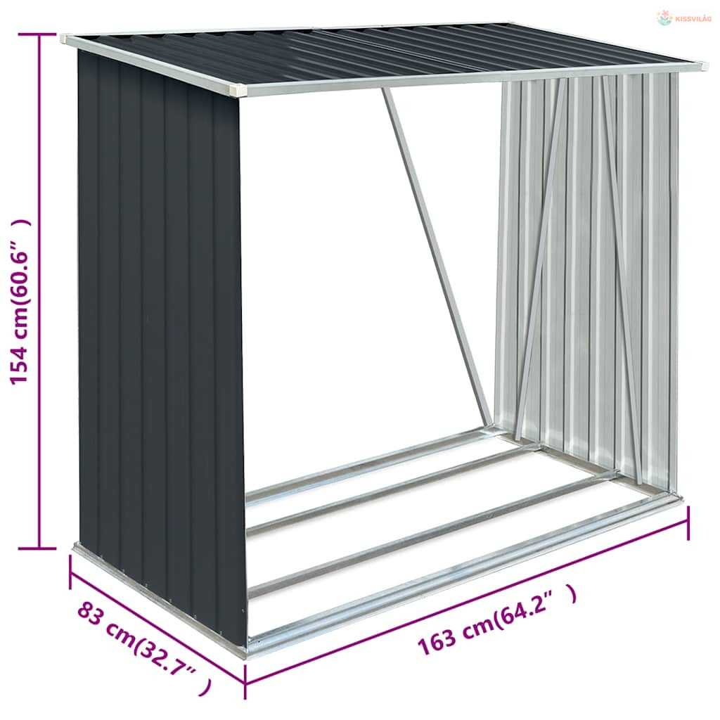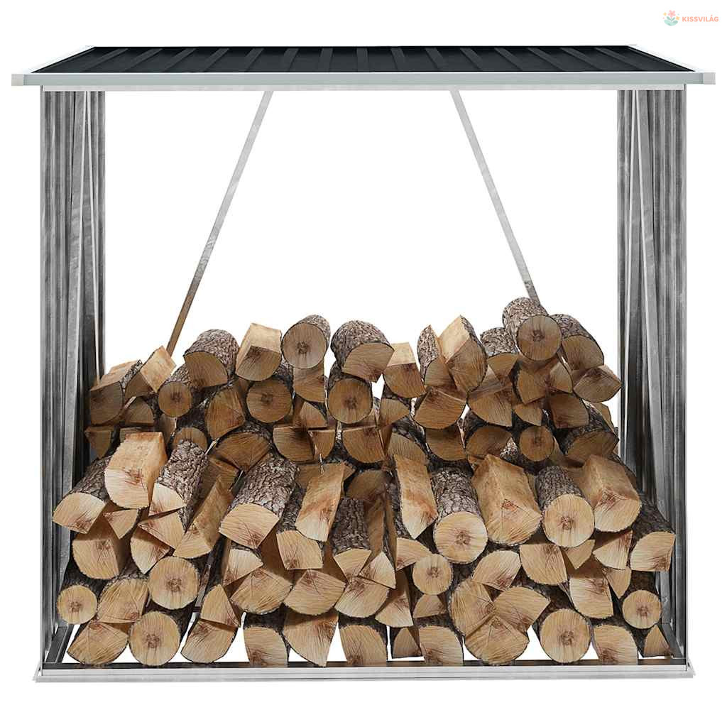 Antracit horganyzott acél kerti tűzifatároló 163 x 83 x 154 cm