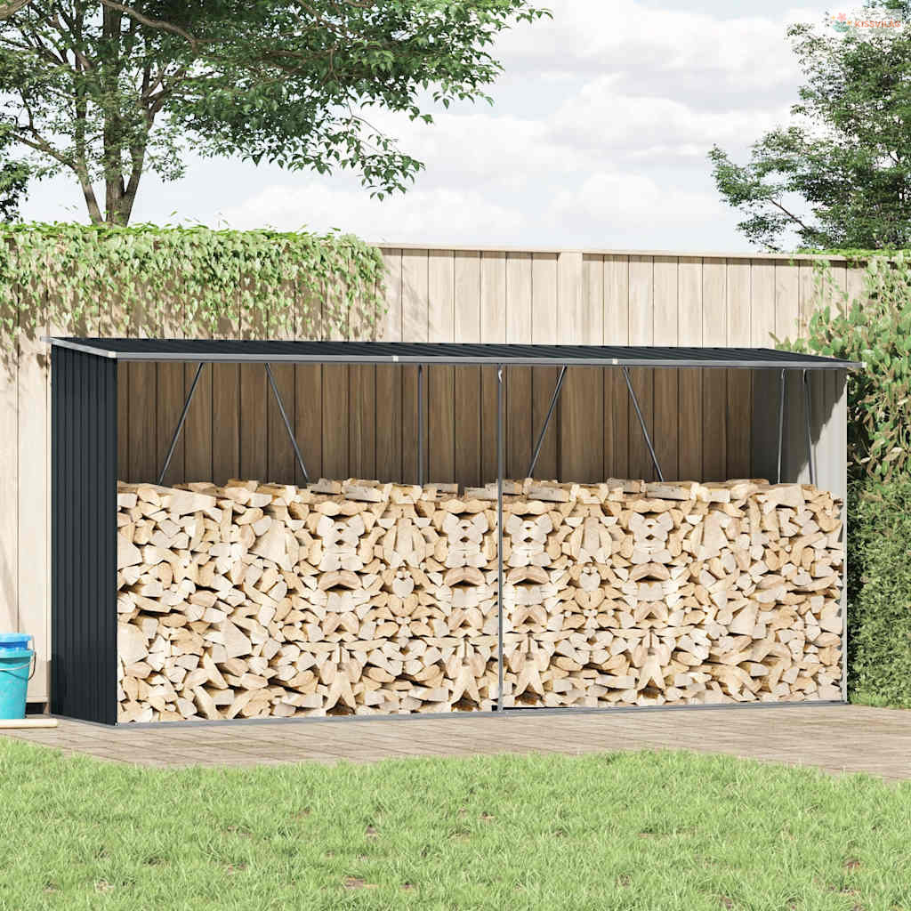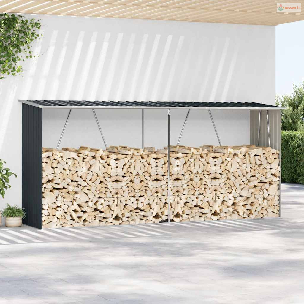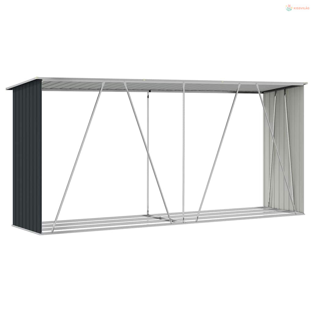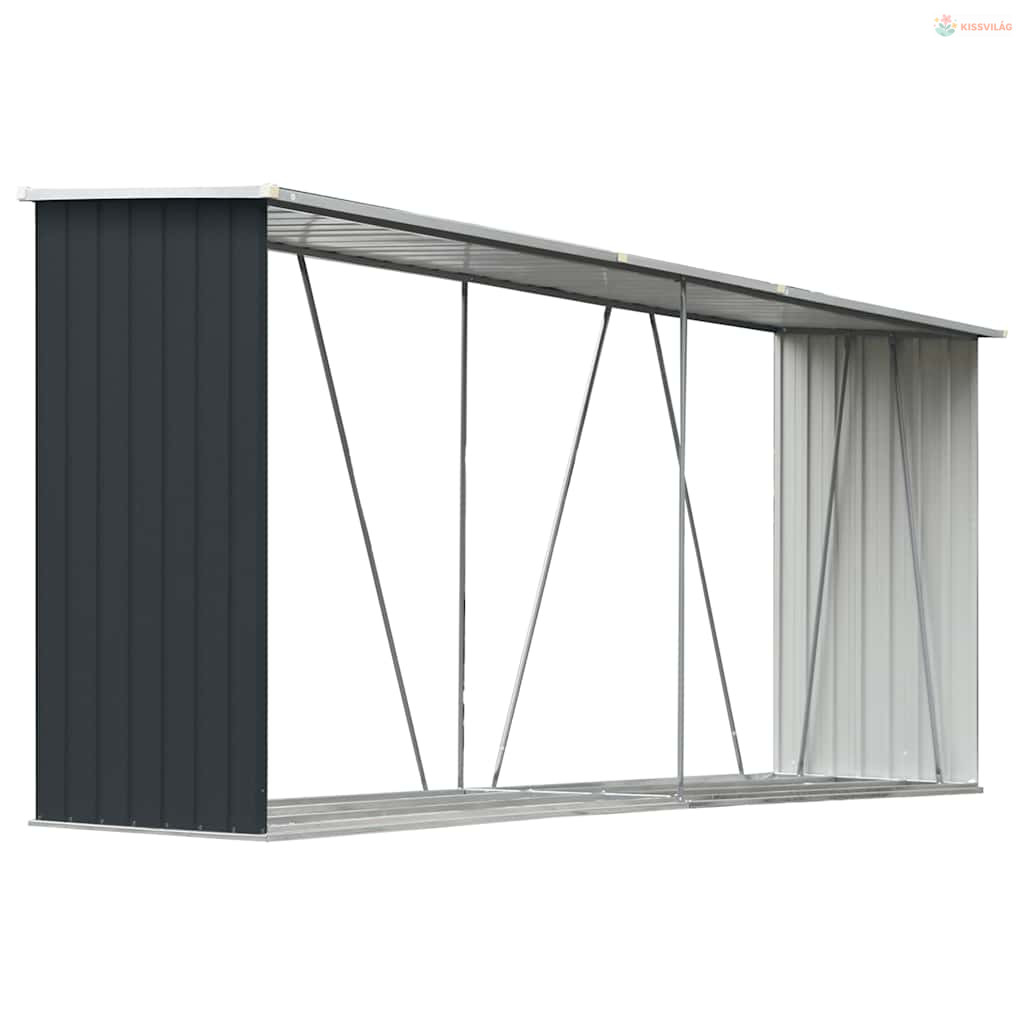 Antracit horganyzott acél kerti tűzifatároló 330 x 84 x 152 cm