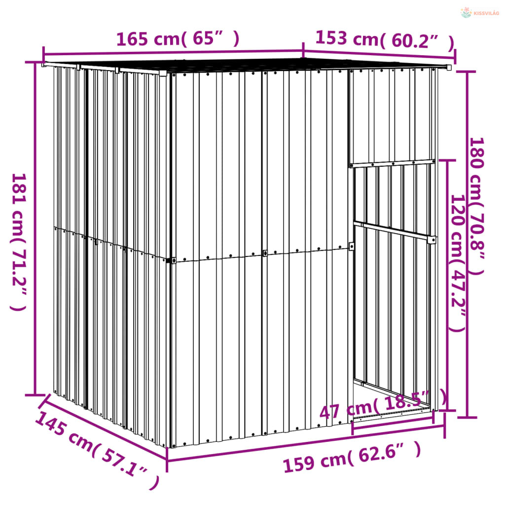 Antracit horganyzott acél kutyakennel tetővel 165x153x181 cm