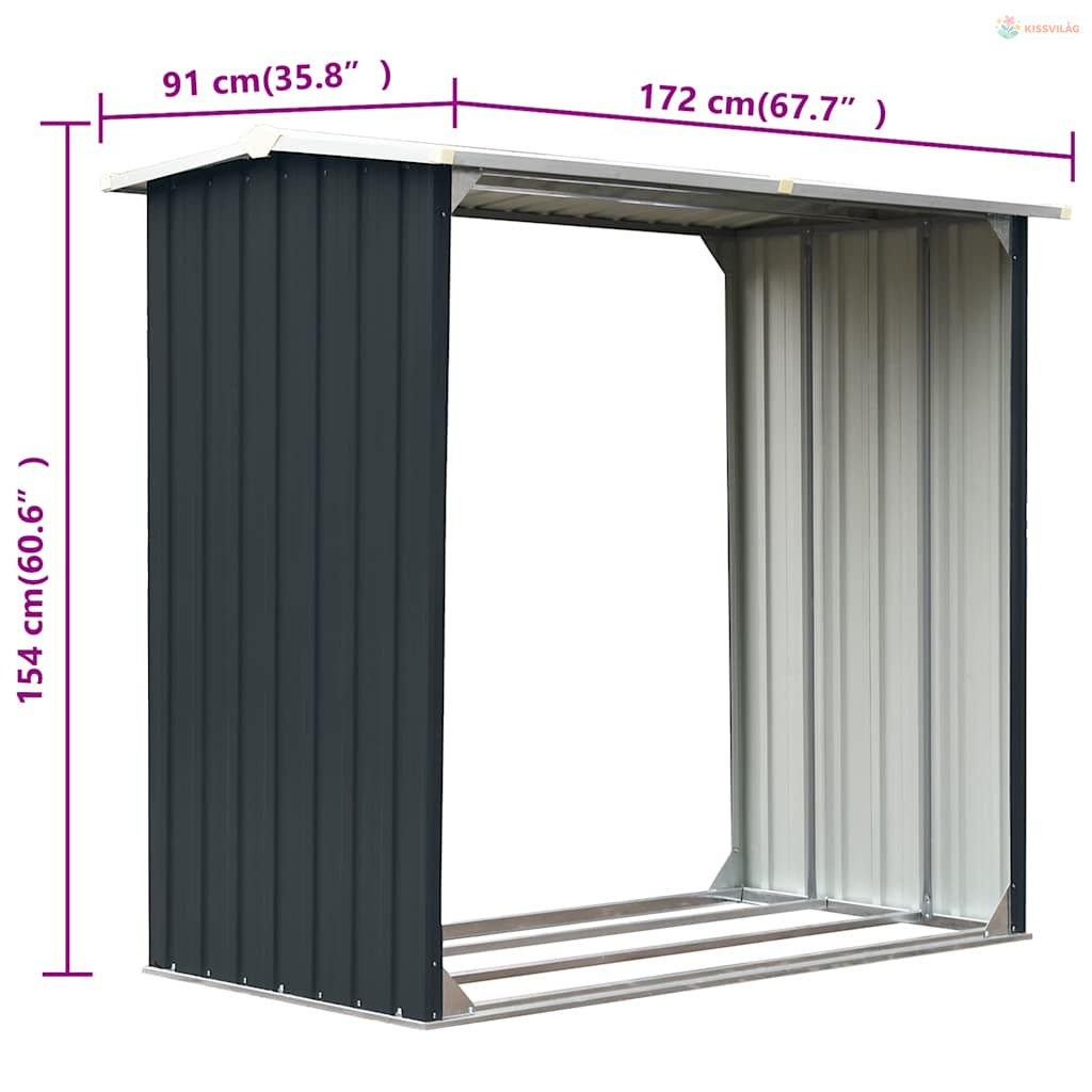 Antracit horganyzott acél tűzifatároló 172 x 91 x 154 cm