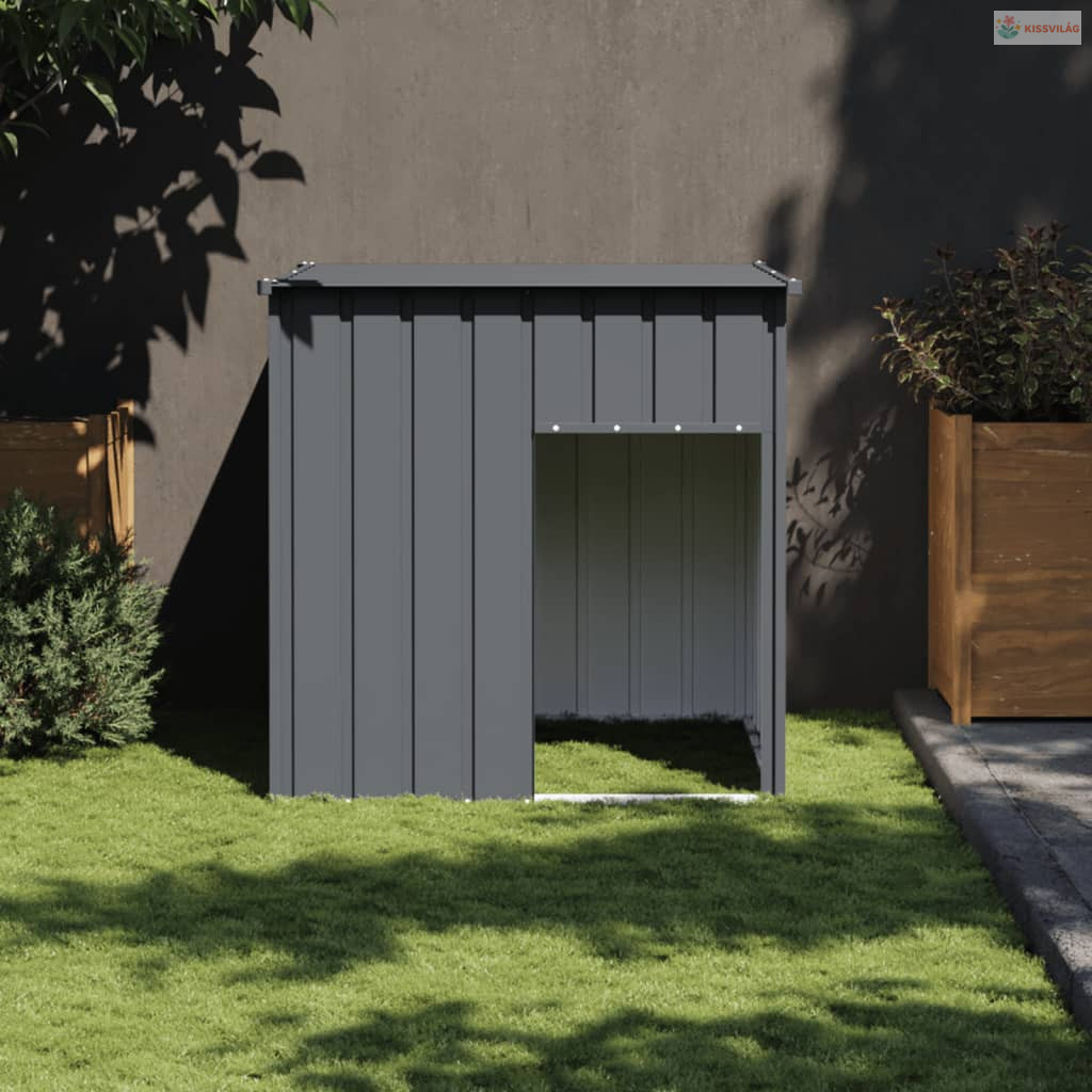 Antracit színű horganyzott acél kutyaház tetővel 110 x 103 x 109 cm