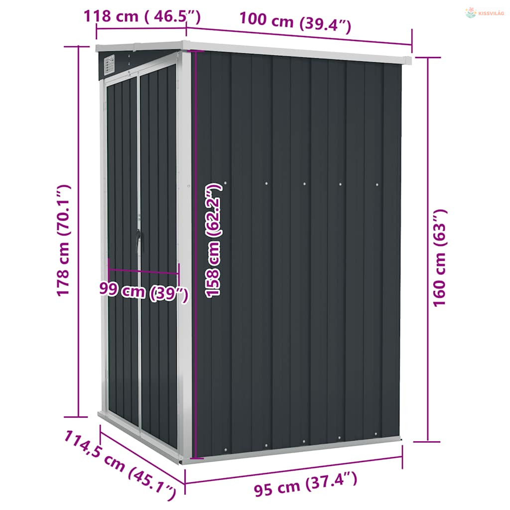 Antracitszürke acél falhoz erősíthető fészer 118x100x178 cm