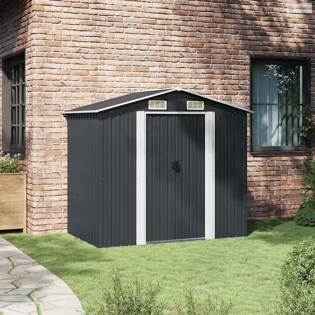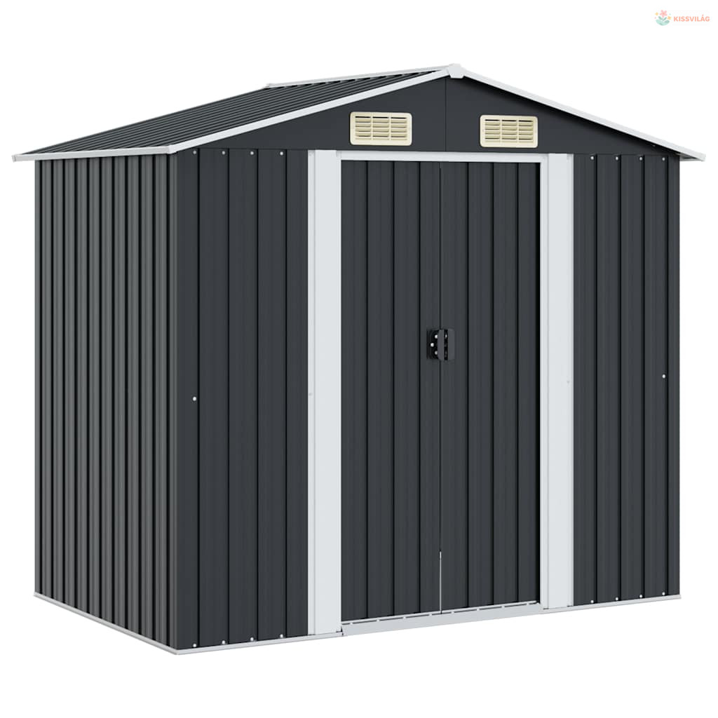 Antracitszürke acél kerti fészer 204 x 132 x 186 cm