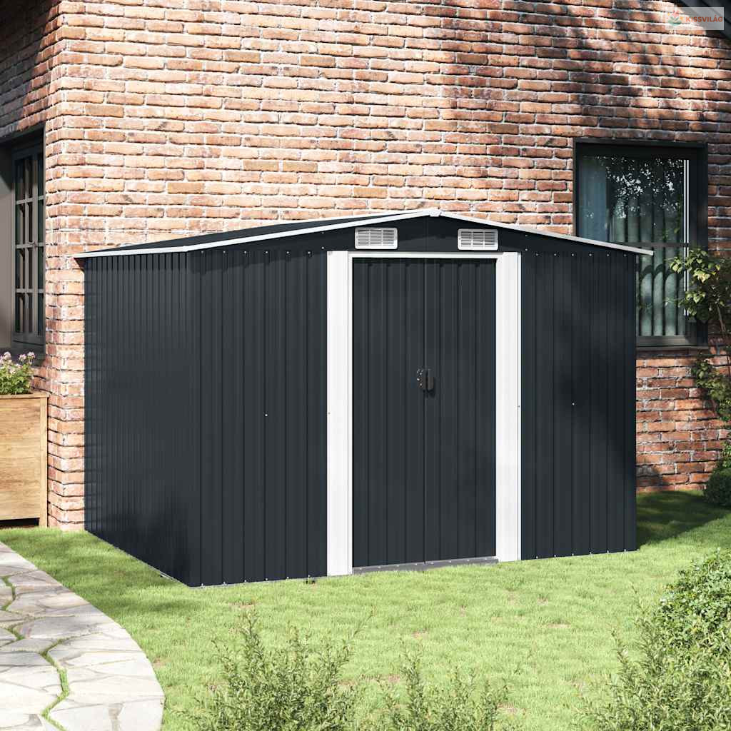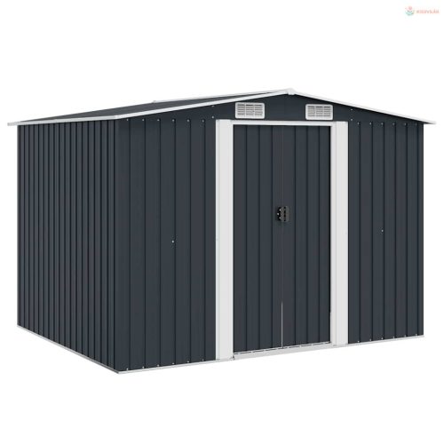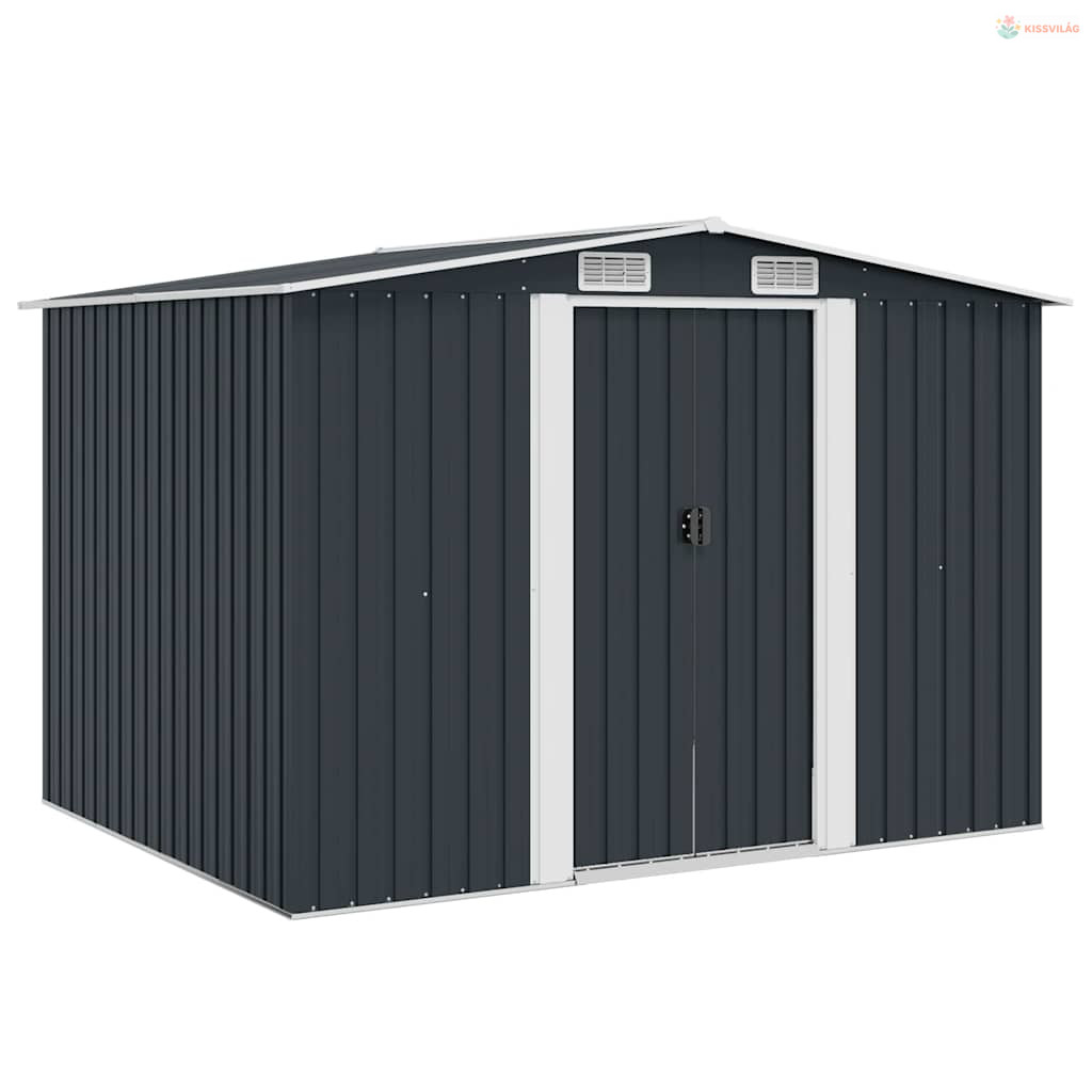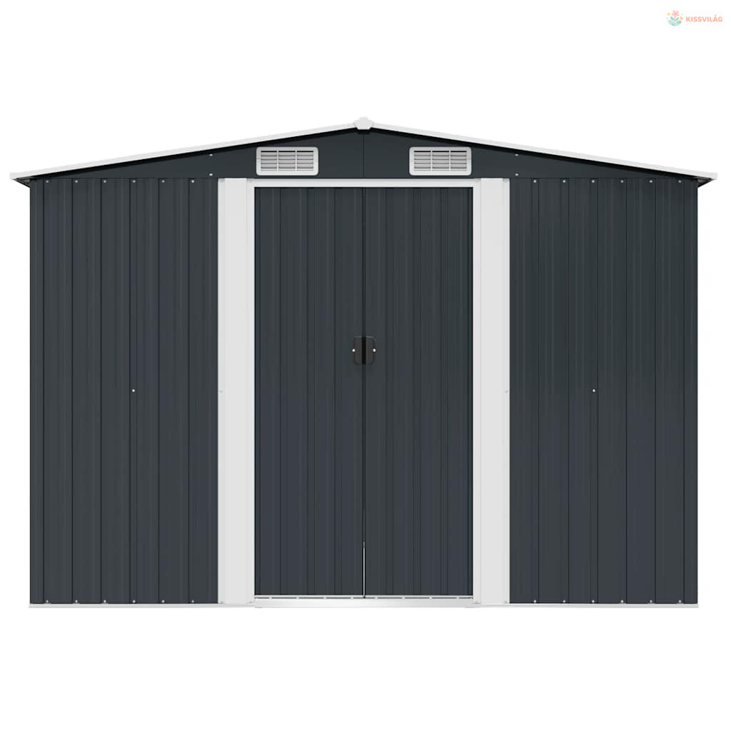 Antracitszürke acél kerti fészer 257 x 205 x 178 cm