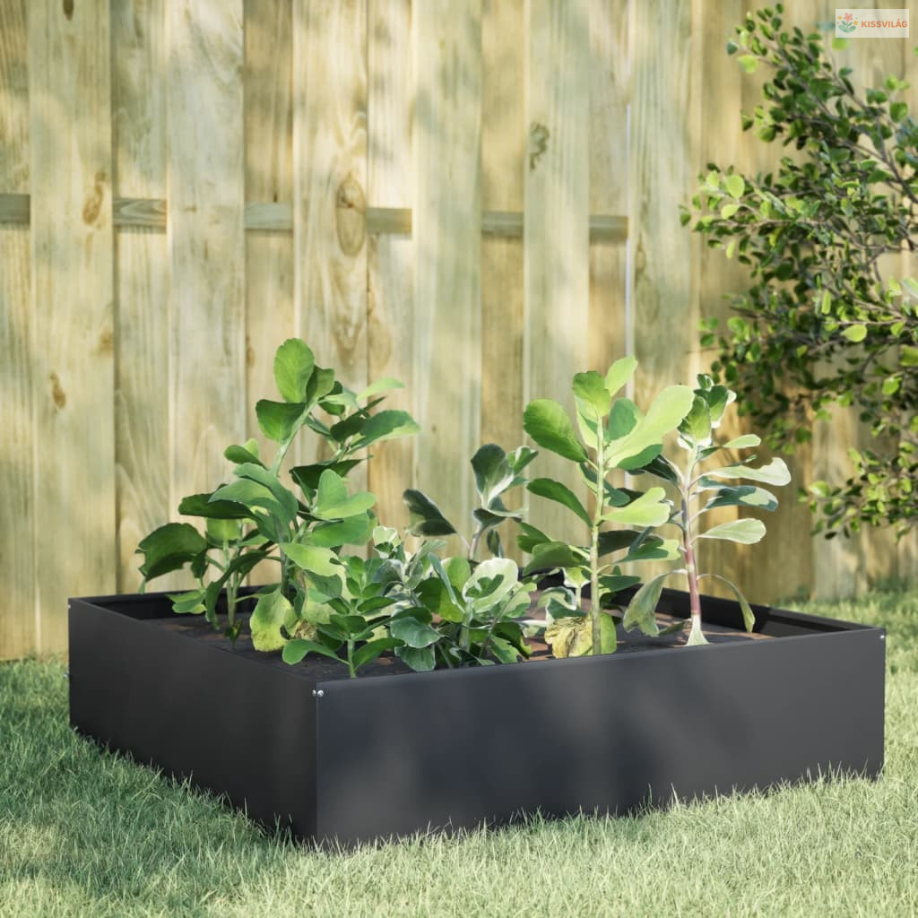 Antracitszürke acél kerti magaságyás 100 x 100 x 25 cm