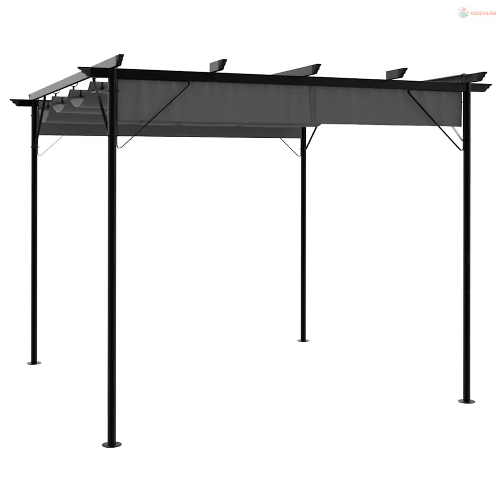 Antracitszürke acél pavilon behúzható tetővel 3 x 3 m 180 g/m²