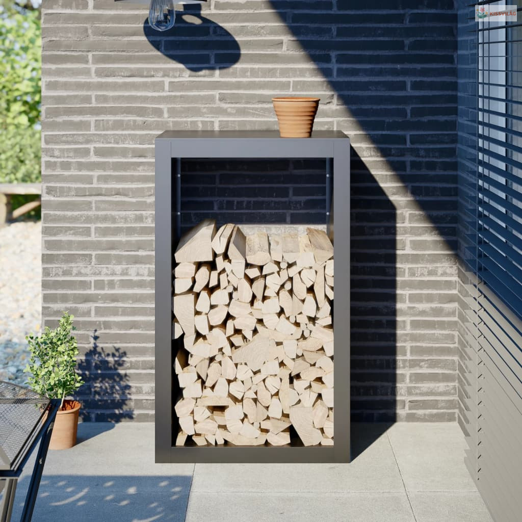 Antracitszürke acél tűzifatároló 60 x 40 x 100 cm