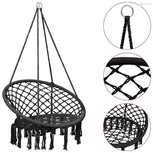 Ez a fára akasztható hinta acélvázzal és kopásálló kötélhálóval rendelkezik, így masszív és nagy teherbírású. A szék háttámlája állítható, hogy tökéletesen kényelmes legyen. A teljes hintaszék magassága beállítható, hogy a gyerekek lábai igény szerint a földön vagy a földtől távol legyenek. A hintaszék nagy tartást és stabilitást biztosít, így gyermekeinek nem kell a kötelekbe kapaszkodniuk attól tartva, hogy kiesnek, ezáltal kényelmesen pihenhetnek vagy hintázhatnak. Az állítható függesztőkötelek szilárdan tartják a hintát, míg a négy pont egyenlő húzóerőt biztosít az egyensúly fenntartása és a biztonság érdekében. A bojtos dizájn tovább növeli szépségét.