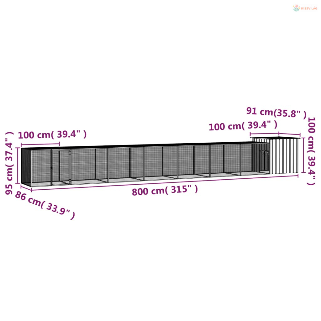 Antracitszürke horganyzott acél csirkeketrec 800x91x100 cm