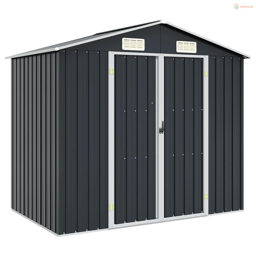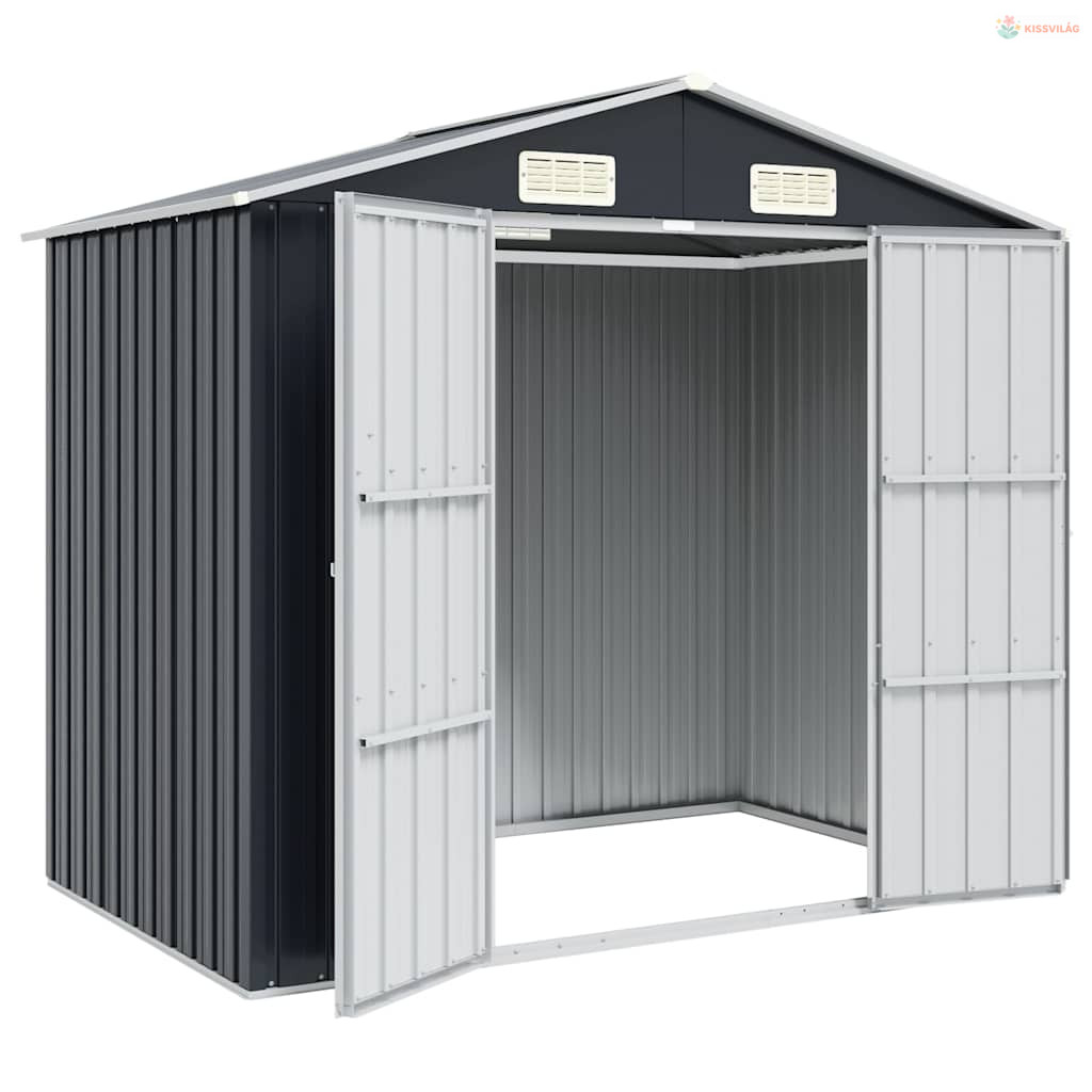Antracitszürke horganyzott acél kerti fészer 205 x 129 x 183 cm