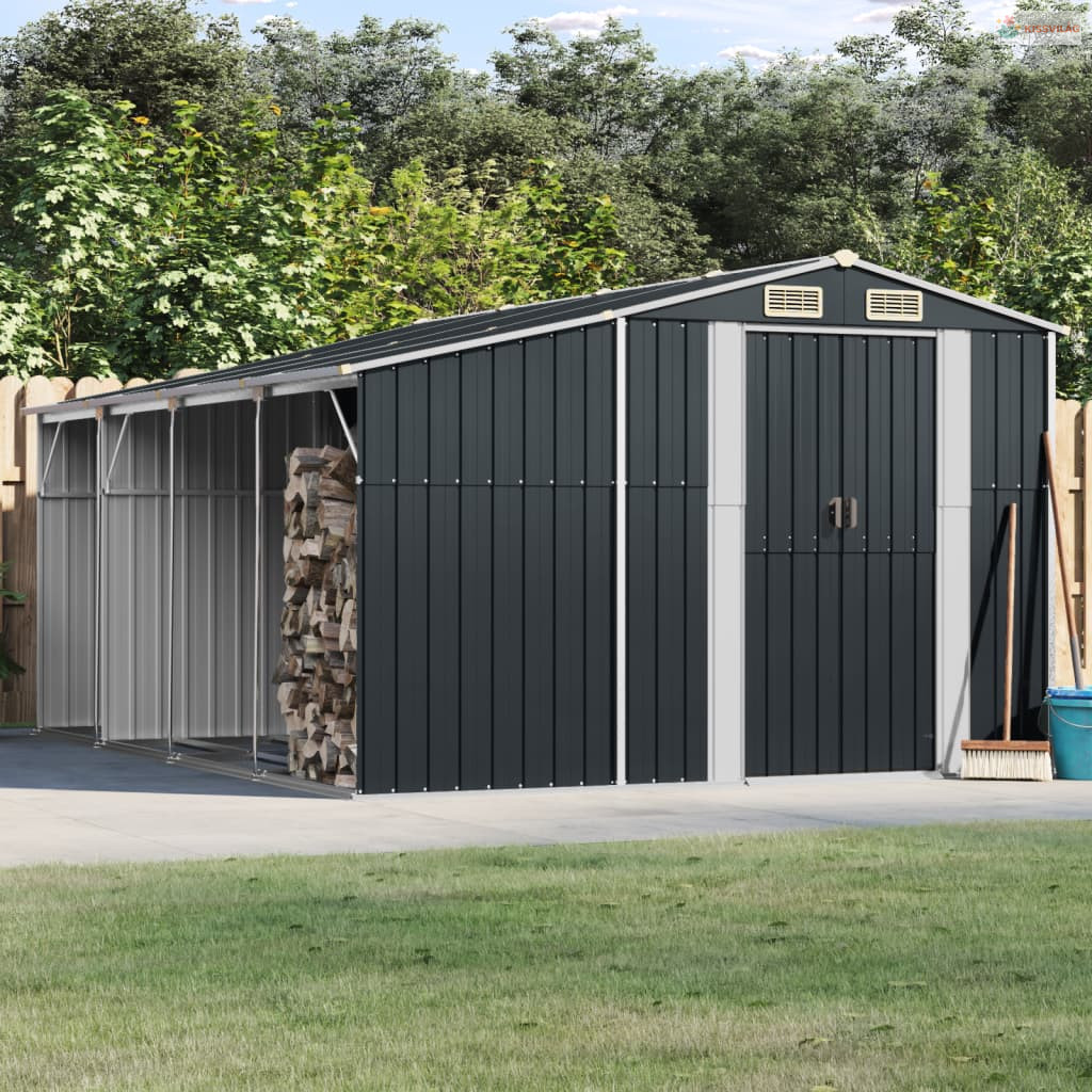 Antracitszürke horganyzott acél kerti fészer 277x365,5x179 cm