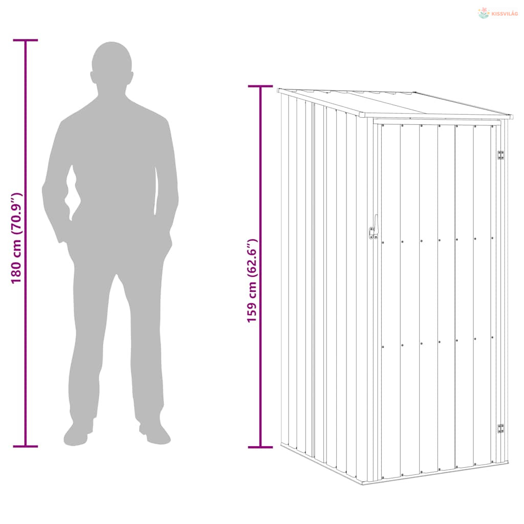 • Tartós anyag: Mivel horganyzott acélból készült, ez a tárolófészer minimális karbantartást igényel, és nagyon tartós.