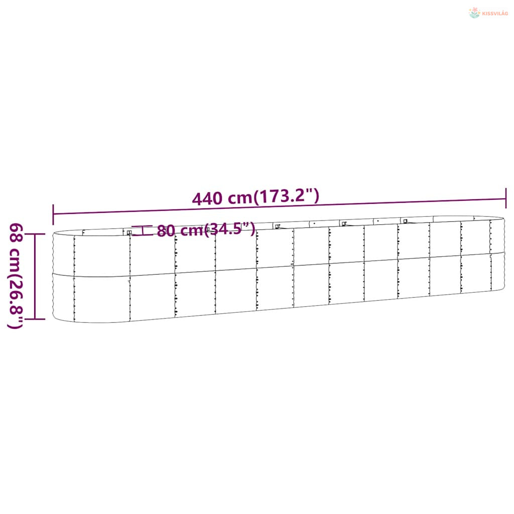Antracitszürke horganyzott acél kerti magaságyás 440x80x68 cm