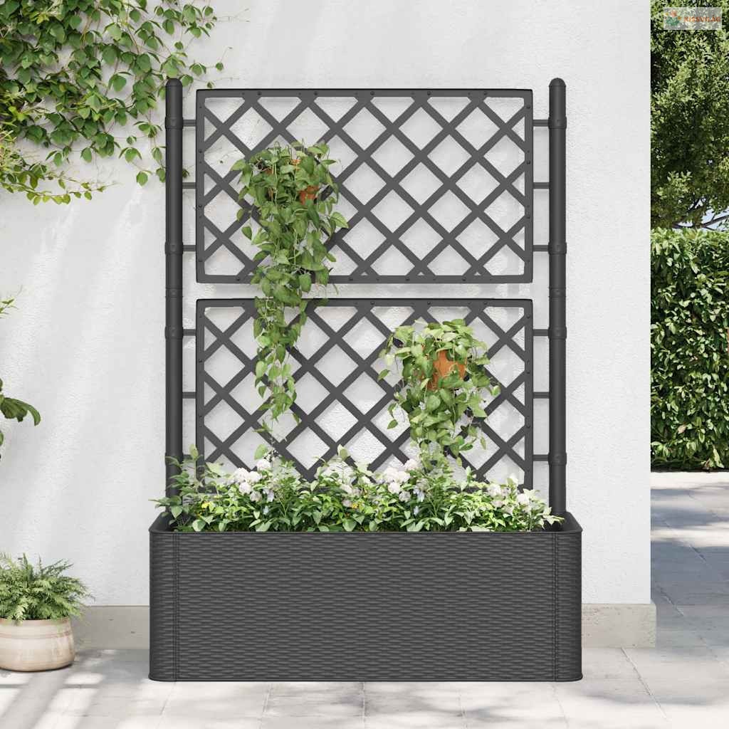 Hozzon létre bájos hátteret virágai számára ezzel az elegáns, praktikus és egyedülálló automata öntöző magaságyással! A rácsos ültető nagy virágládájába rengeteg zöld növényt és virágot ültethet.