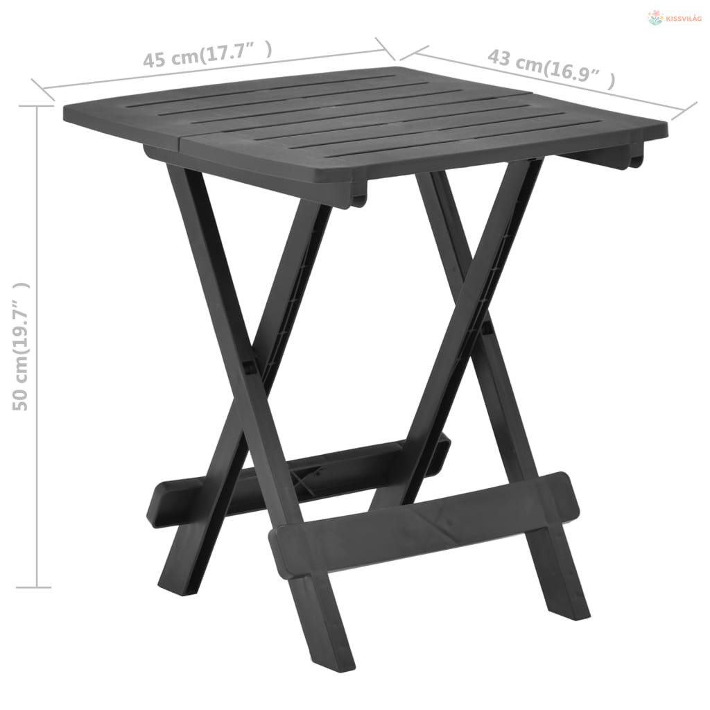 Antracitszürke műanyag összecsukható kerti asztal 45x43x50 cm