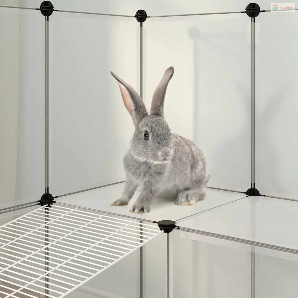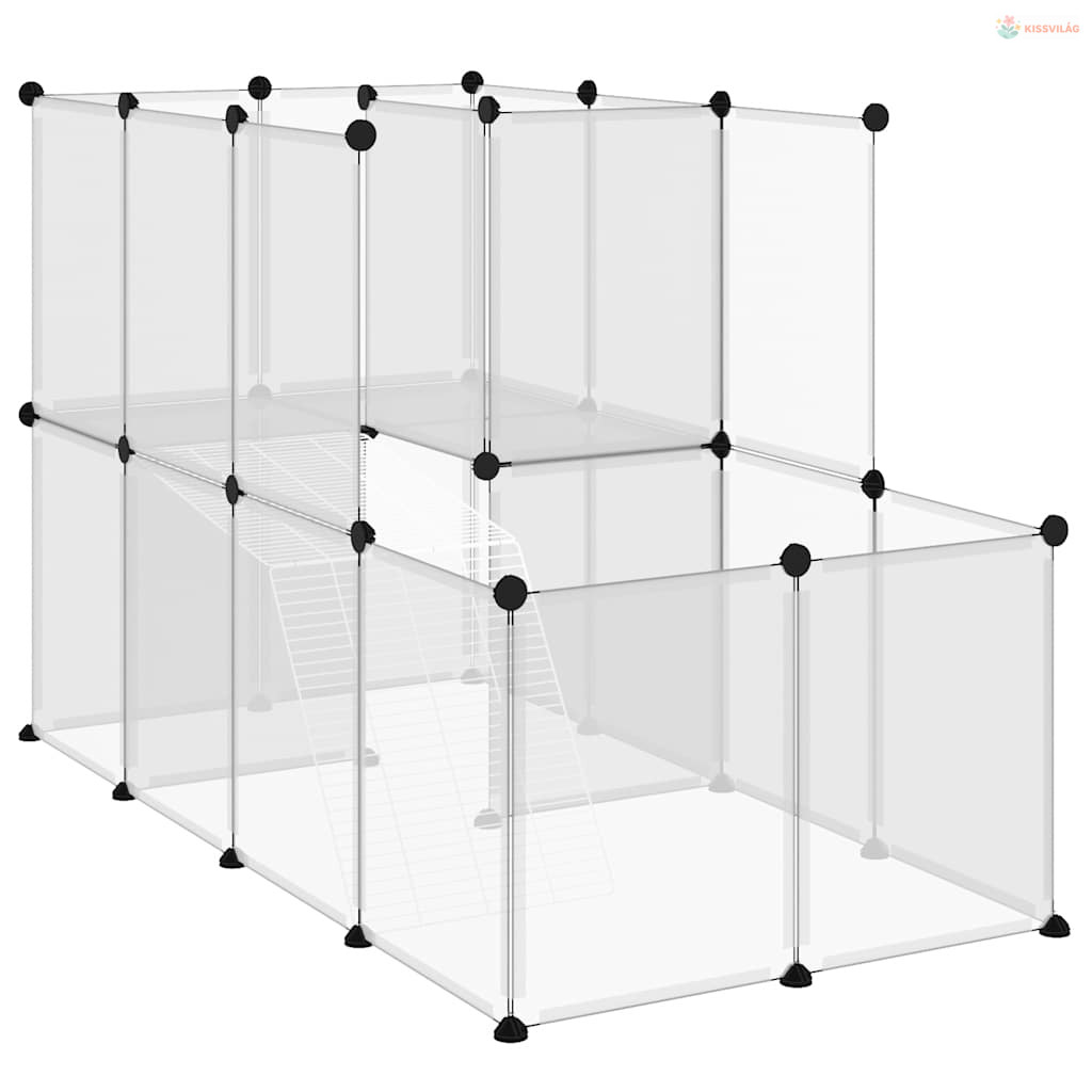 • Tágas ketrec: A kisállatház egy emelvényt és egy létrát tartalmaz kis barátai számára a pihenéshez és a játékhoz, miközben biztonságban, a határokon belül maradnak.
