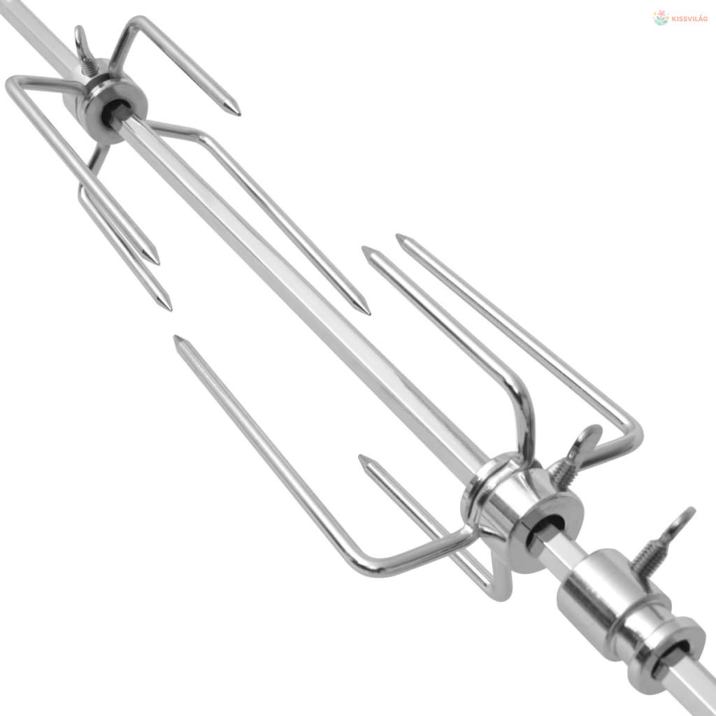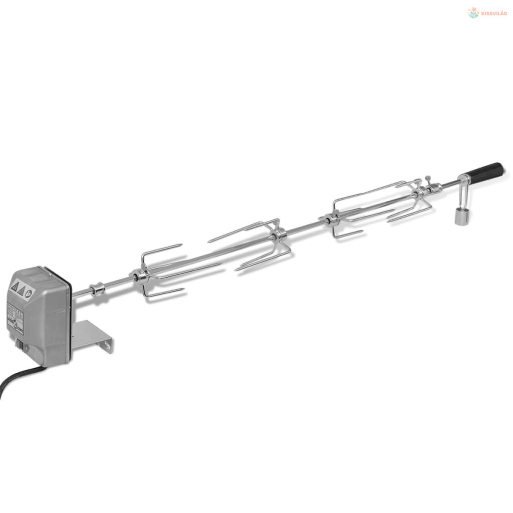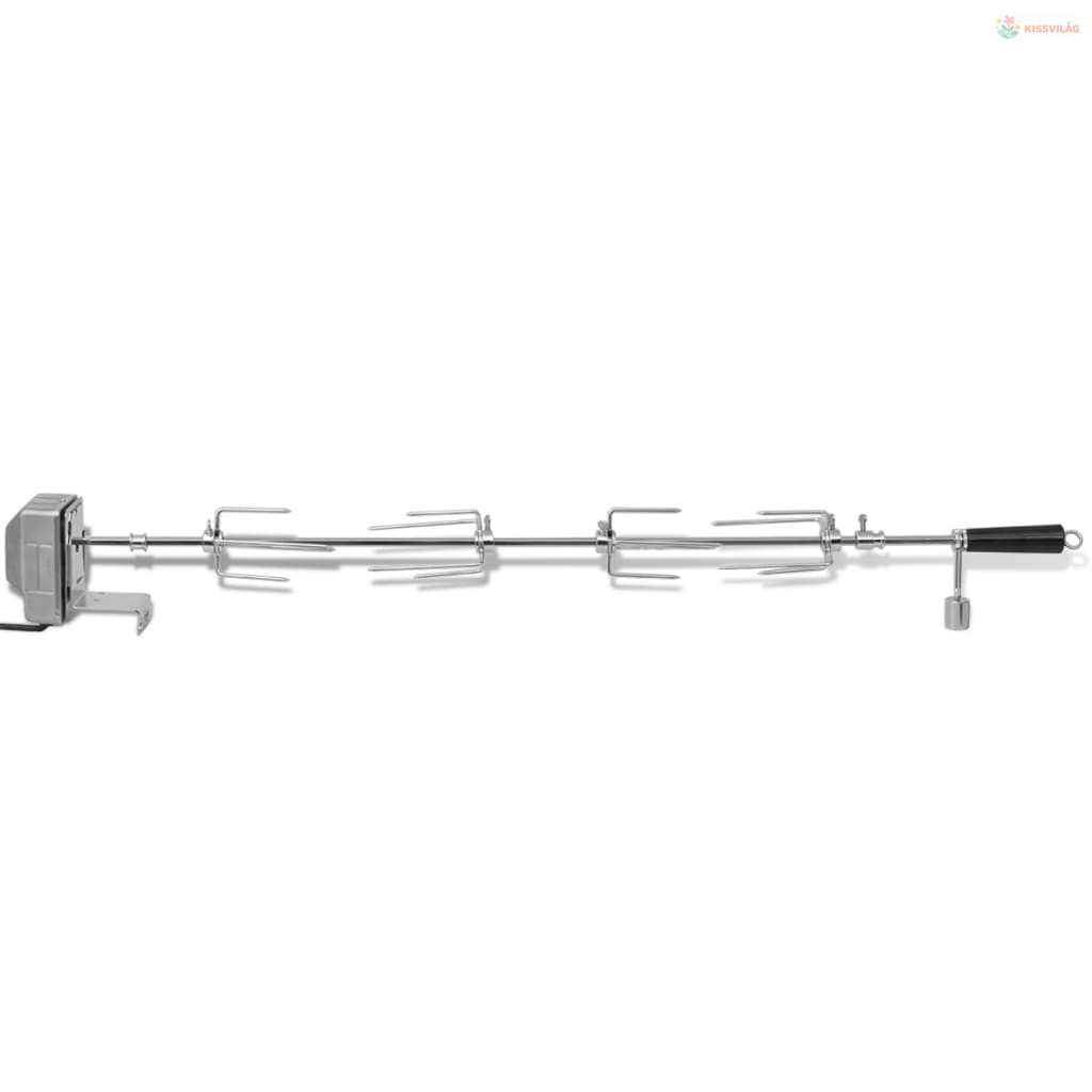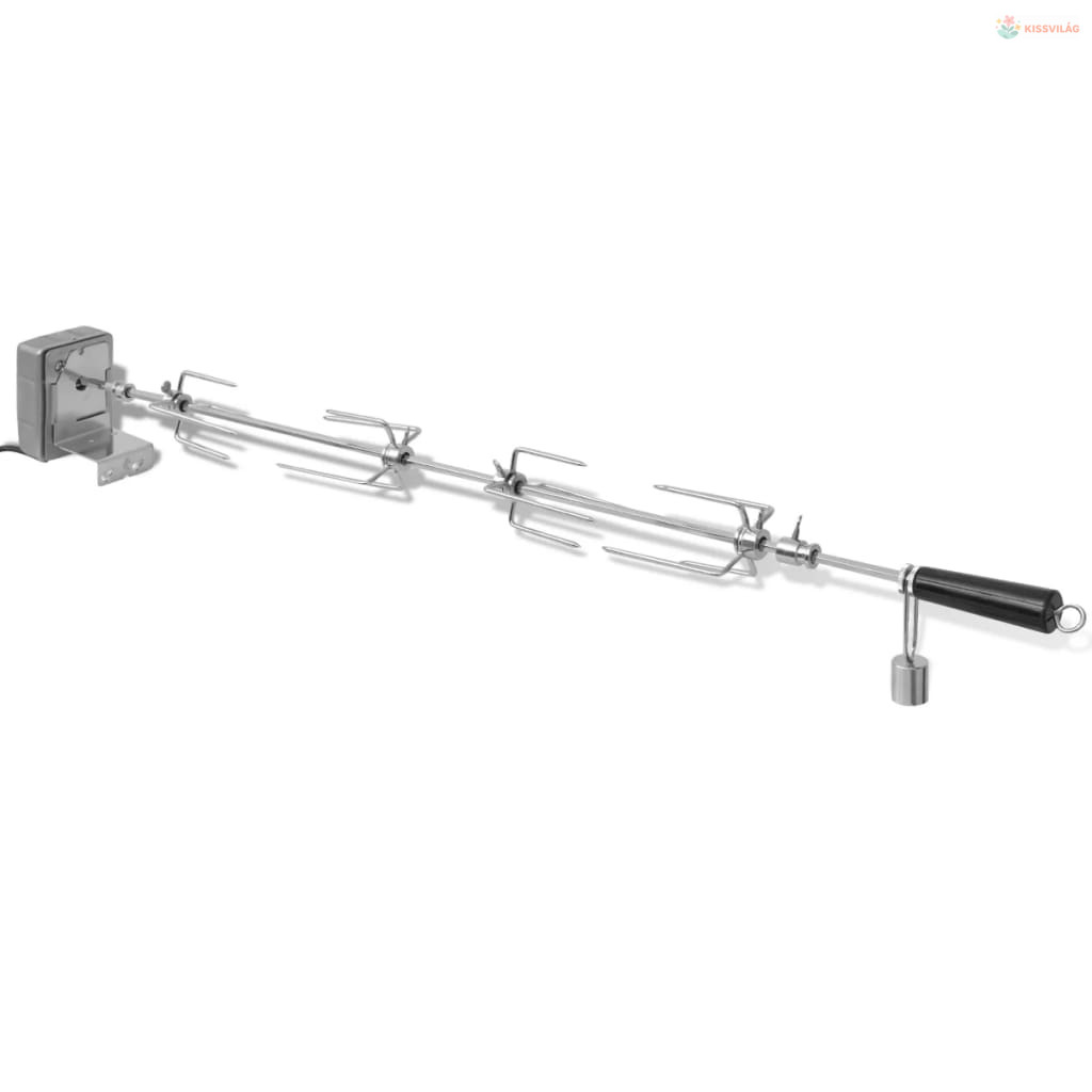 Ez a motorizált nyárs automatikusan forog, ezért bármilyen rajta sütni kívánt étel egyenletes hőt kap. A villák közti távolság a különféle méretű és alakú ételeknek megfelelően állítható, valamint a rögzítőcsavarok segítségével fixálható. A kiegyenlítő súly extra súlyával szükség esetén remekül ellensúlyozza az étel súlyát. E kiváló minőségű anyagokból készült sütőnyárs könnyen tisztítható és karbantartható.