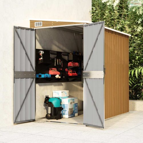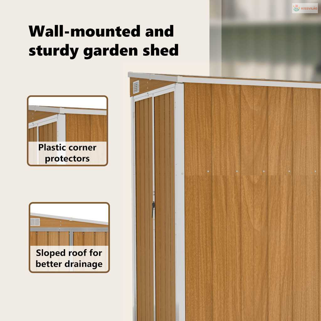 Barna acél falhoz erősíthető kerti fészer 118 x 194 x 178 cm