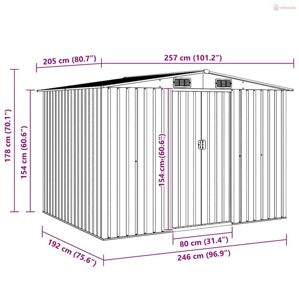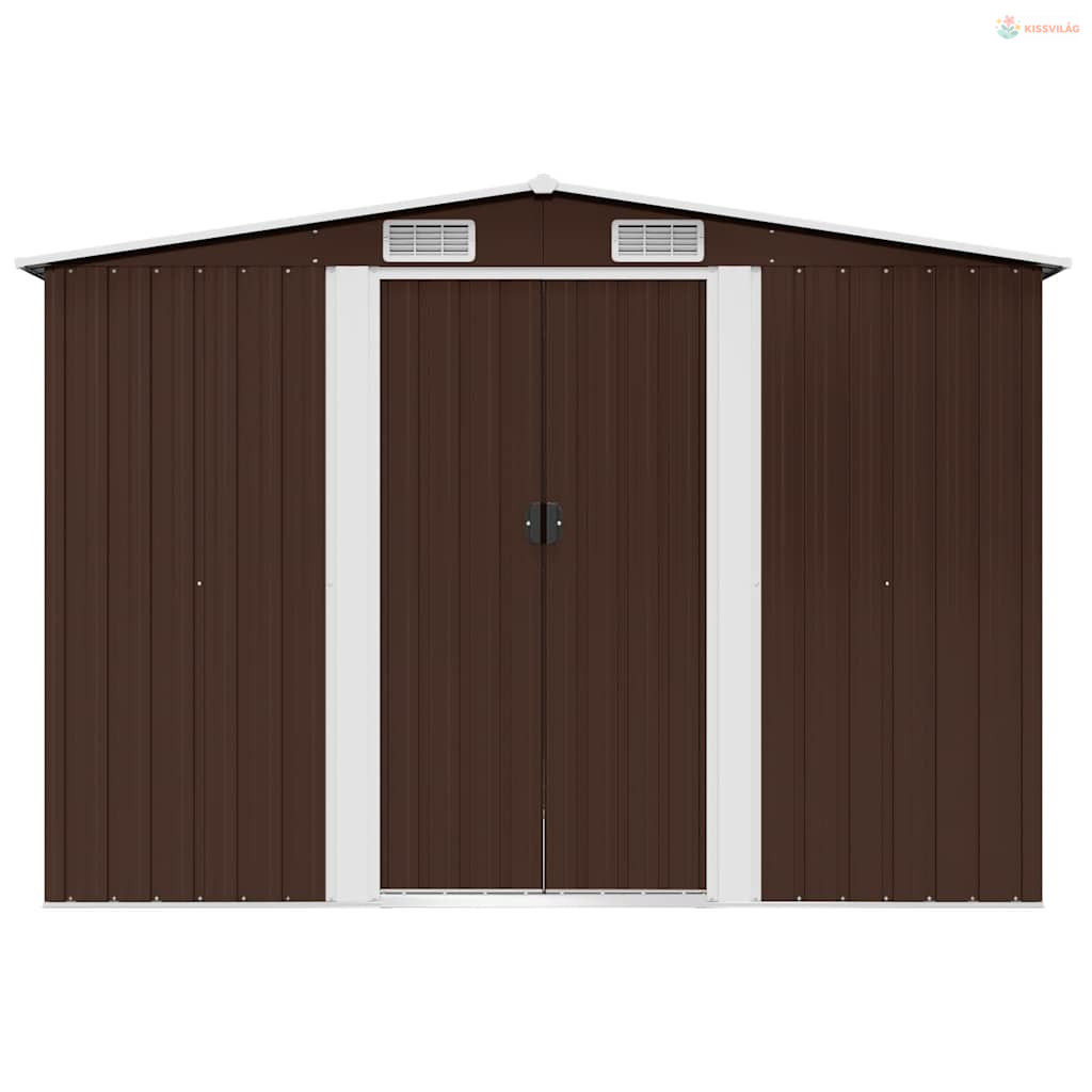Barna acél kerti fészer 257 x 205 x 178 cm