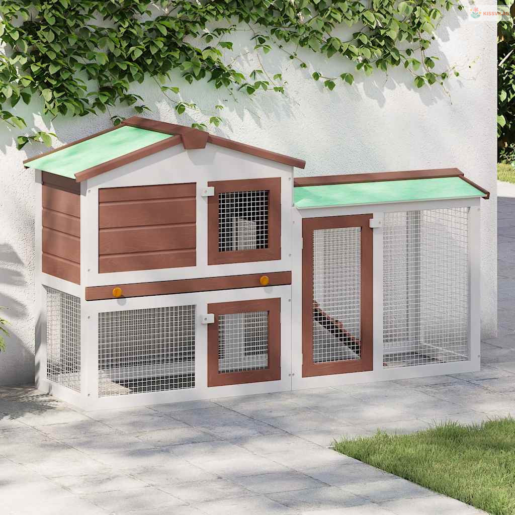 Barna és fehér fa kültéri nyúlketrec 145 x 45 x 84 cm