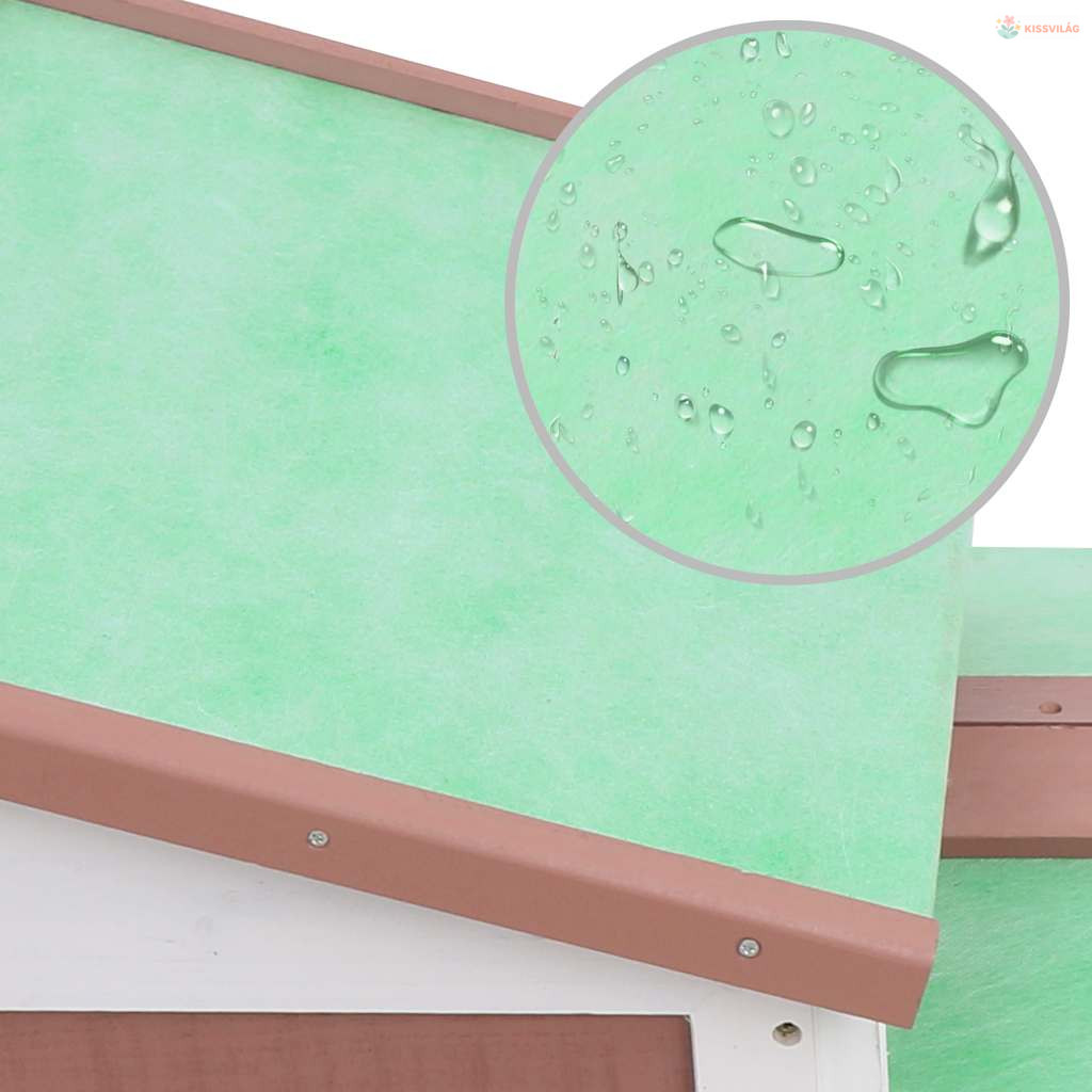 Festett tömör fenyőfából készült, amely tartós, és biztonságos az állatok számára. A kátránytető megvédi kis barátait a külső időjárási körülményektől. Emelt bakja biztonságban, szárazon és melegen tartja a kisállatokat, különösen esős napokon. A mellékelt rámpán háziállata könnyen beléphet az emelt házba. Az egyszerű karbantartás és tisztítás érdekében a ketrec kivehető csepegtetőtálcát tartalmaz. A kültéri futtató tartós huzalkerítése megfelelő szellőzést biztosít, és megóvja háziállatait a ragadozóktól. A zárható ajtók védik háziállatait, és lehetővé teszik, hogy könnyen kivegye és visszategye őket.
