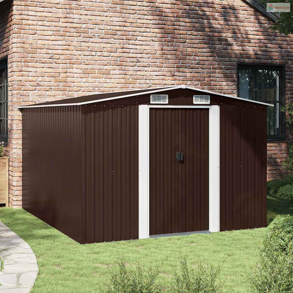 Barna fém kerti fészer 257 x 298 x 178 cm