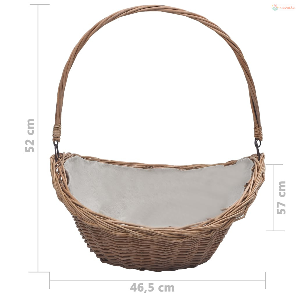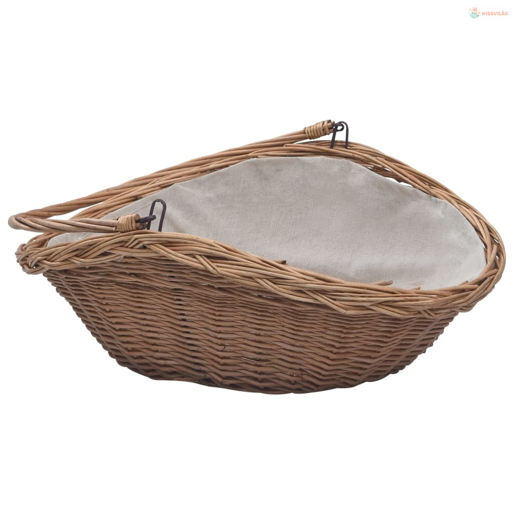 Barna fűzfa tűzifatároló kosár fogantyúval 57 x 46,5 x 52 cm
